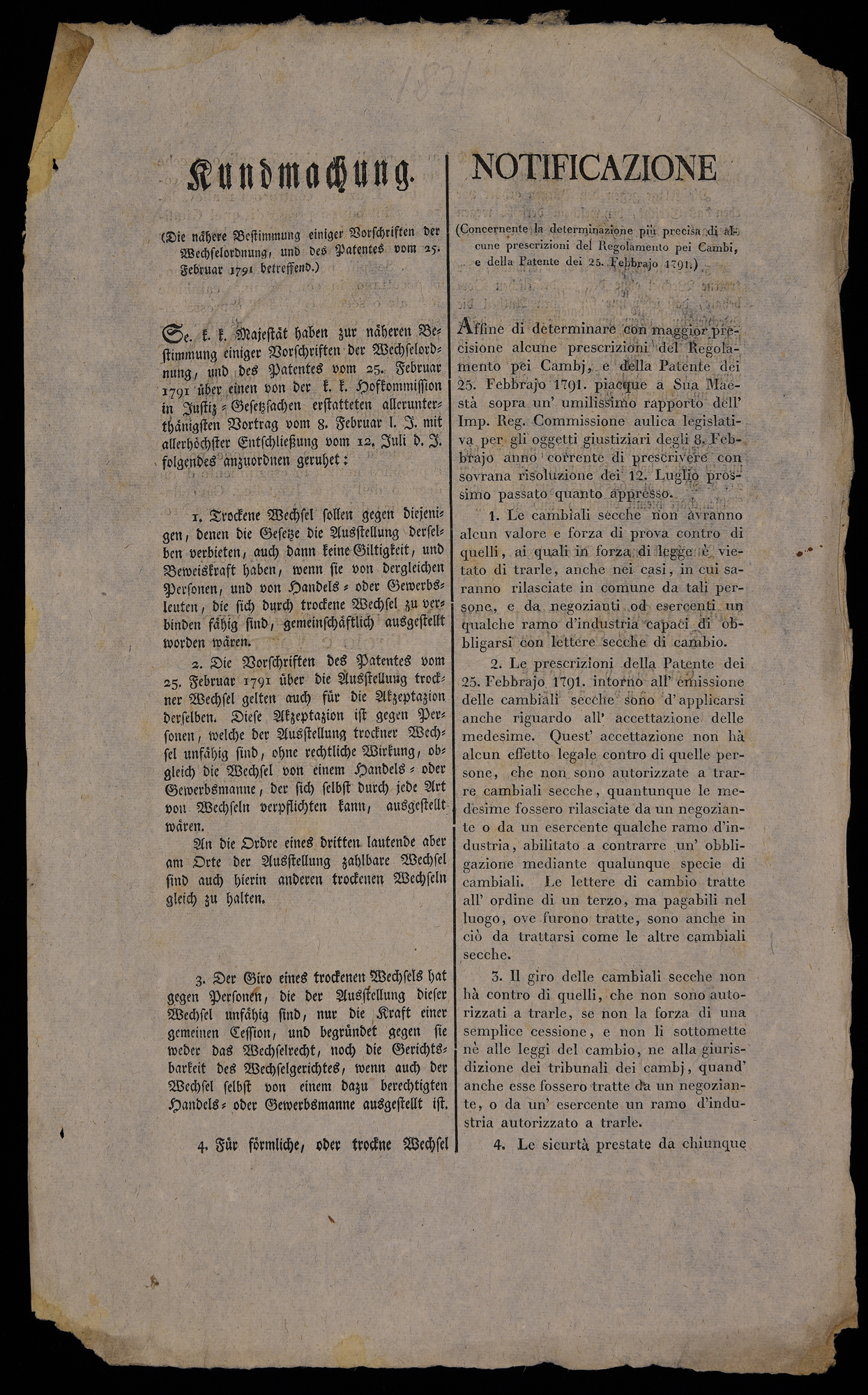| Kundmachung (die nähere Bestimmung einiger Vorschriften der Wechselordnung, und des Patentes vom 25. Februar 1791 betreffend) |