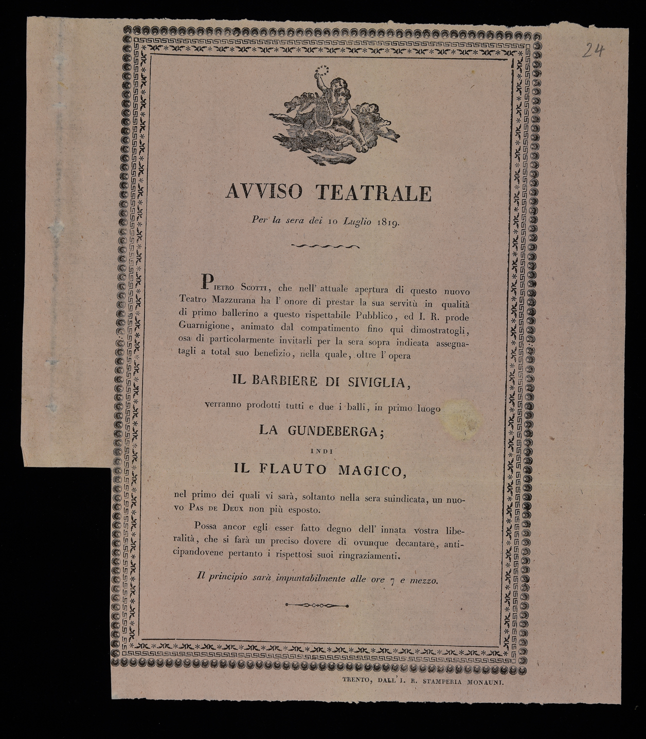 | Avviso teatrale per la sera dei 10 luglio 1819 |