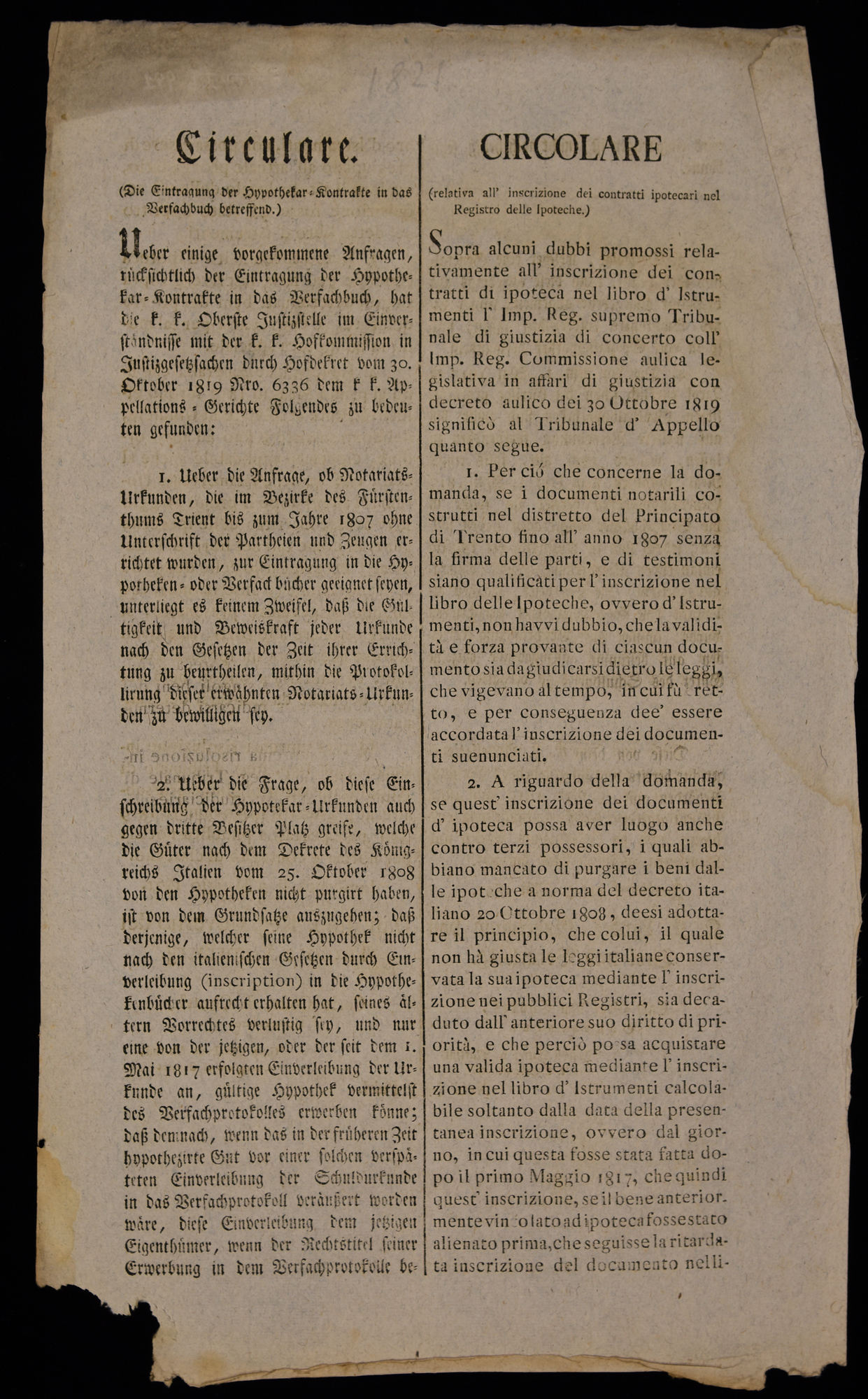 Circulare (die Eintragung der Hypothekar-Kontrakte in das Verfachbuch...