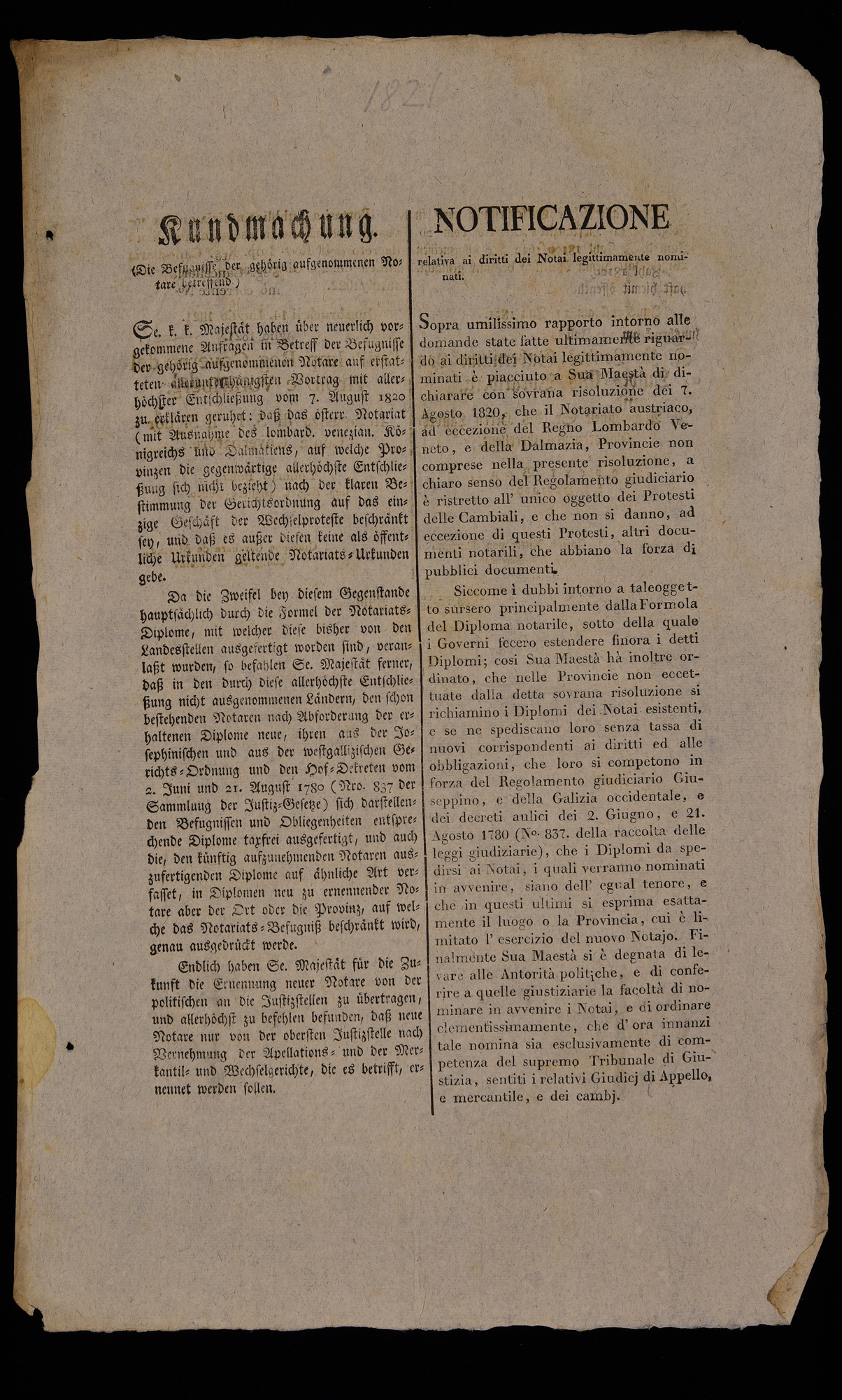 | Kundmachung (die Befugnisse der gehörig aufgenommenen Notare betreffend) |