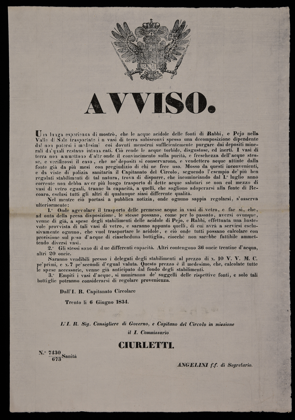 Una lunga esperienza dimostrò, che le acque acidole delle fonti di Rabbi, e Pejo nella Valle di Sole trasportate in vasi di terra subisconvi spesso una decomposizione ...