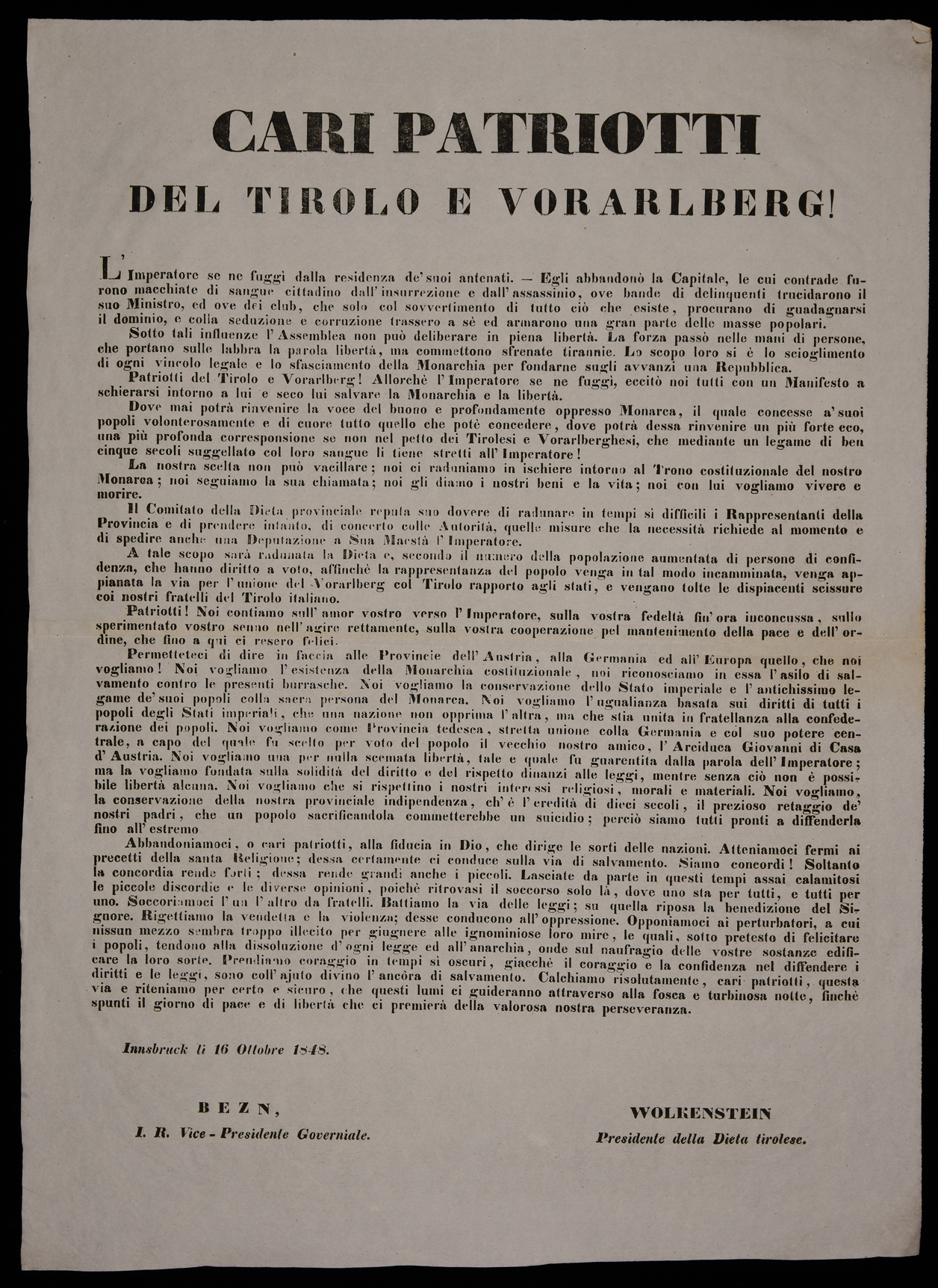 | Cari patriotti del Tirolo e Vorarlberg! |