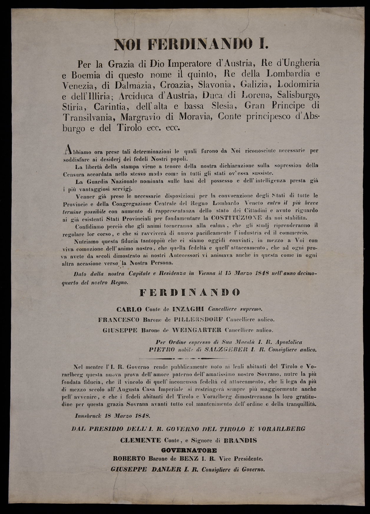 Noi Ferdinando I. per la grazia di Dio imperatore d'Austria, re d'Ungheria e...