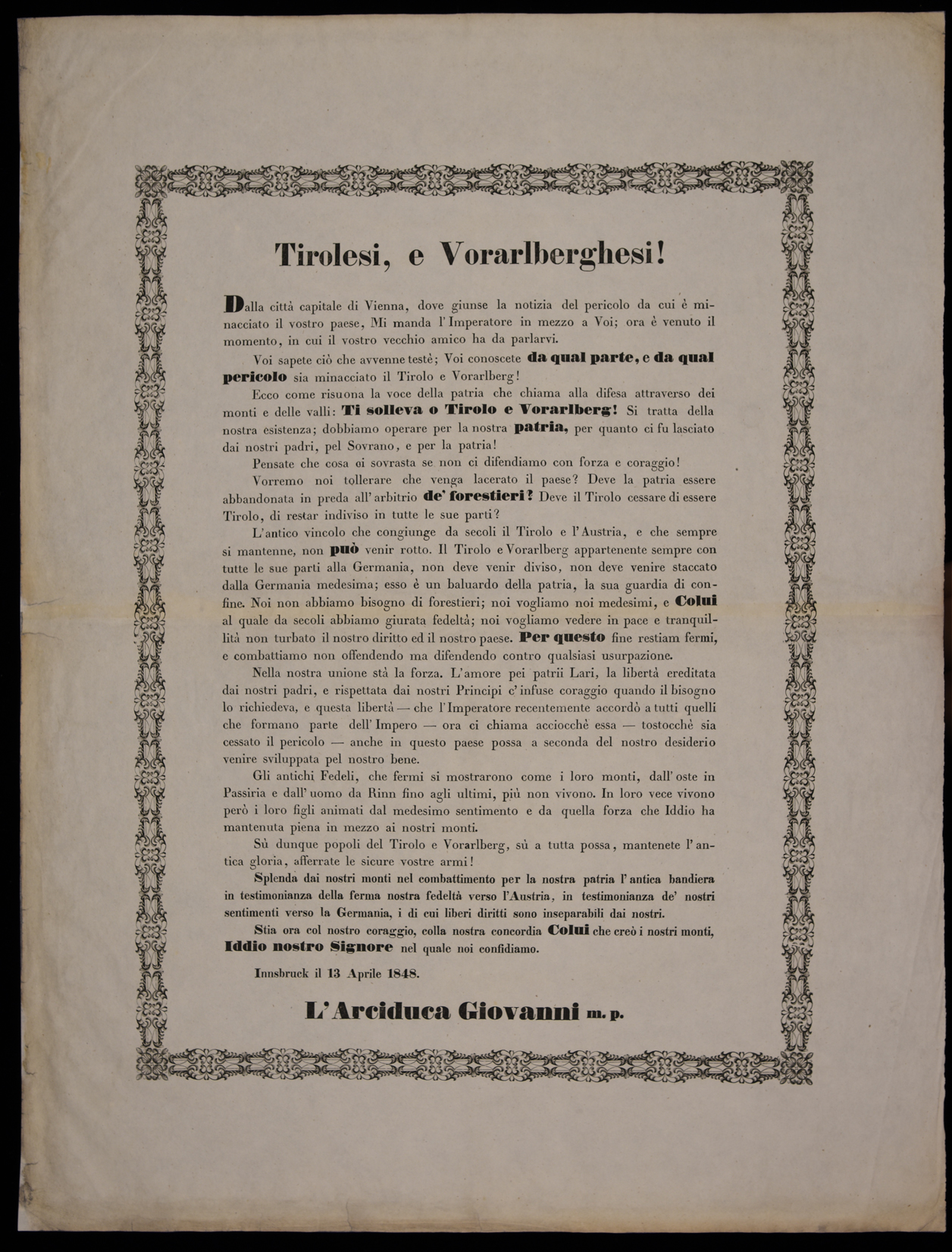 Dalla città capitale di Vienna, dove giunse la notizia del pericolo da cui è minacciato il vostro paese, mi manda l'imperatore in mezzo a voi ...