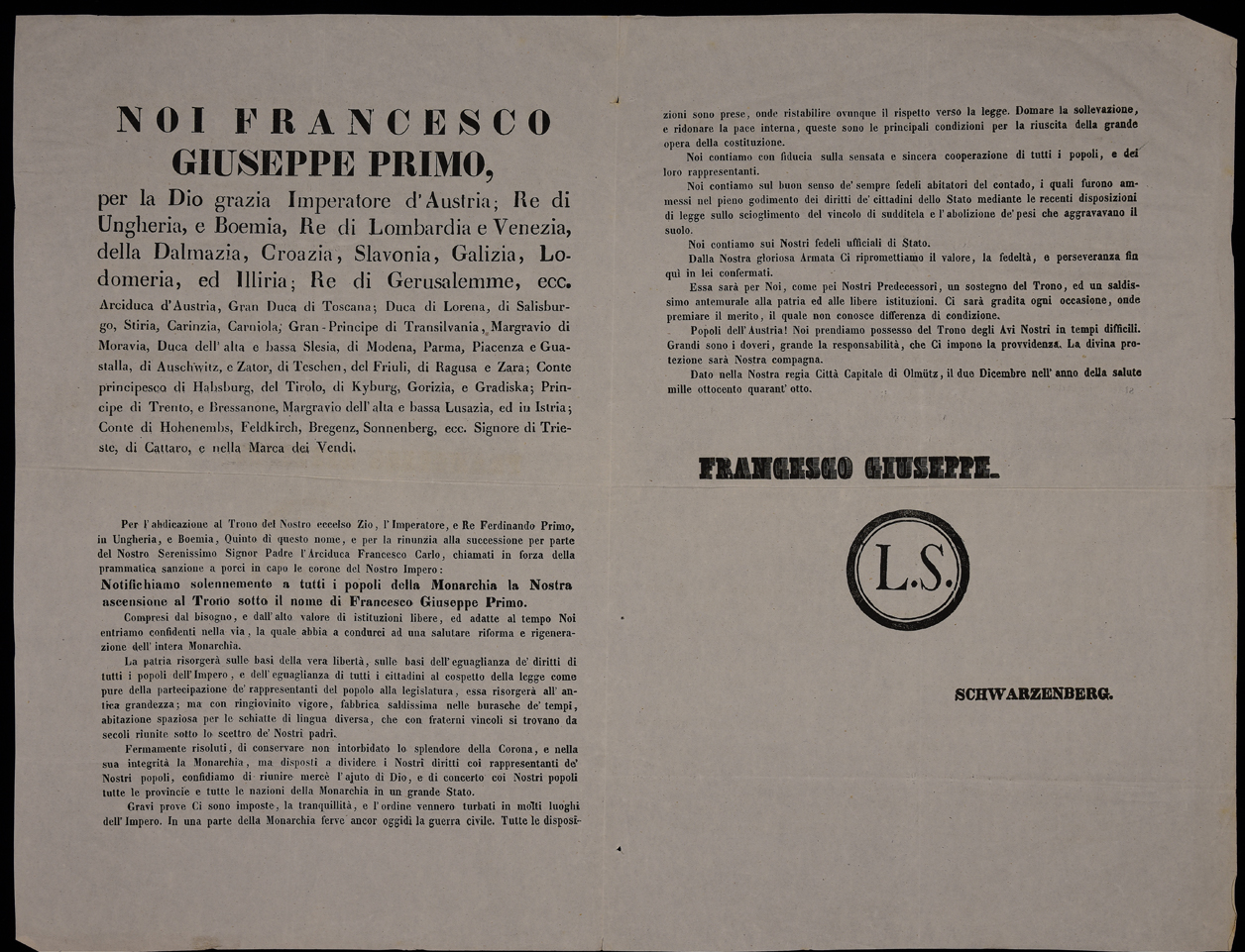 | Noi Francesco Giuseppe primo, per la Dio grazia imperatore d'Austria, re di Ungheria, e Boemia ... |