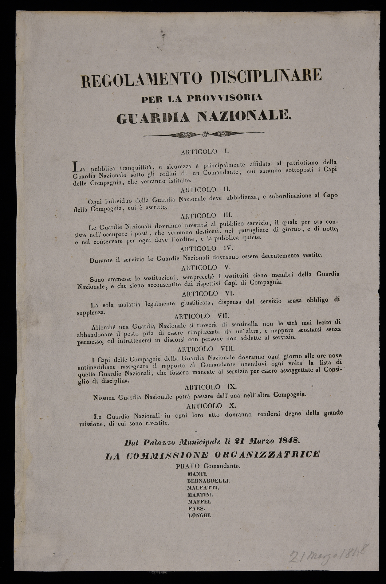 | Regolamento disciplinare per la provvisoria guardia nazionale |