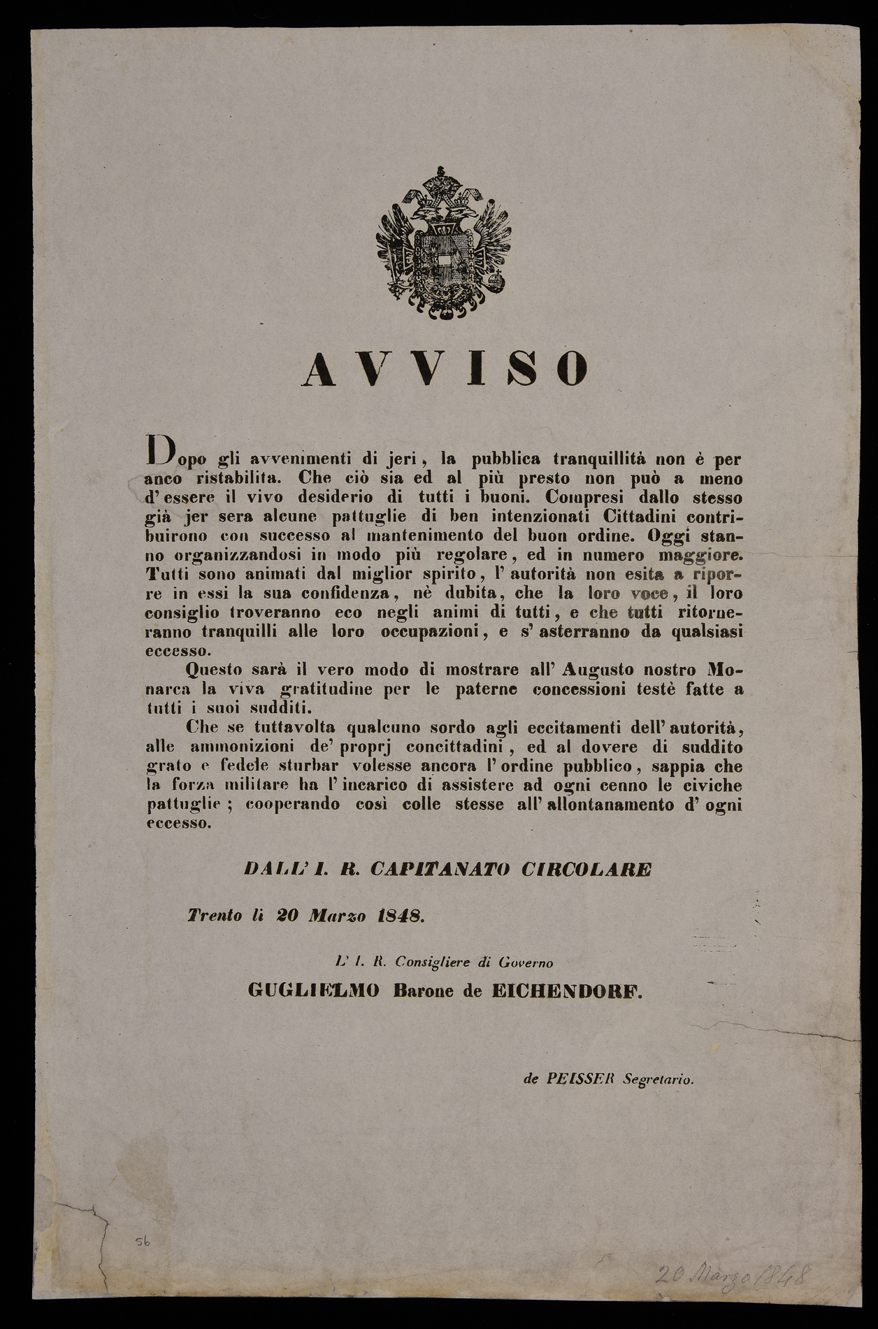Dopo gli avvenimenti di jeri, la pubblica tranquillità non è per anco ristabilita ...
