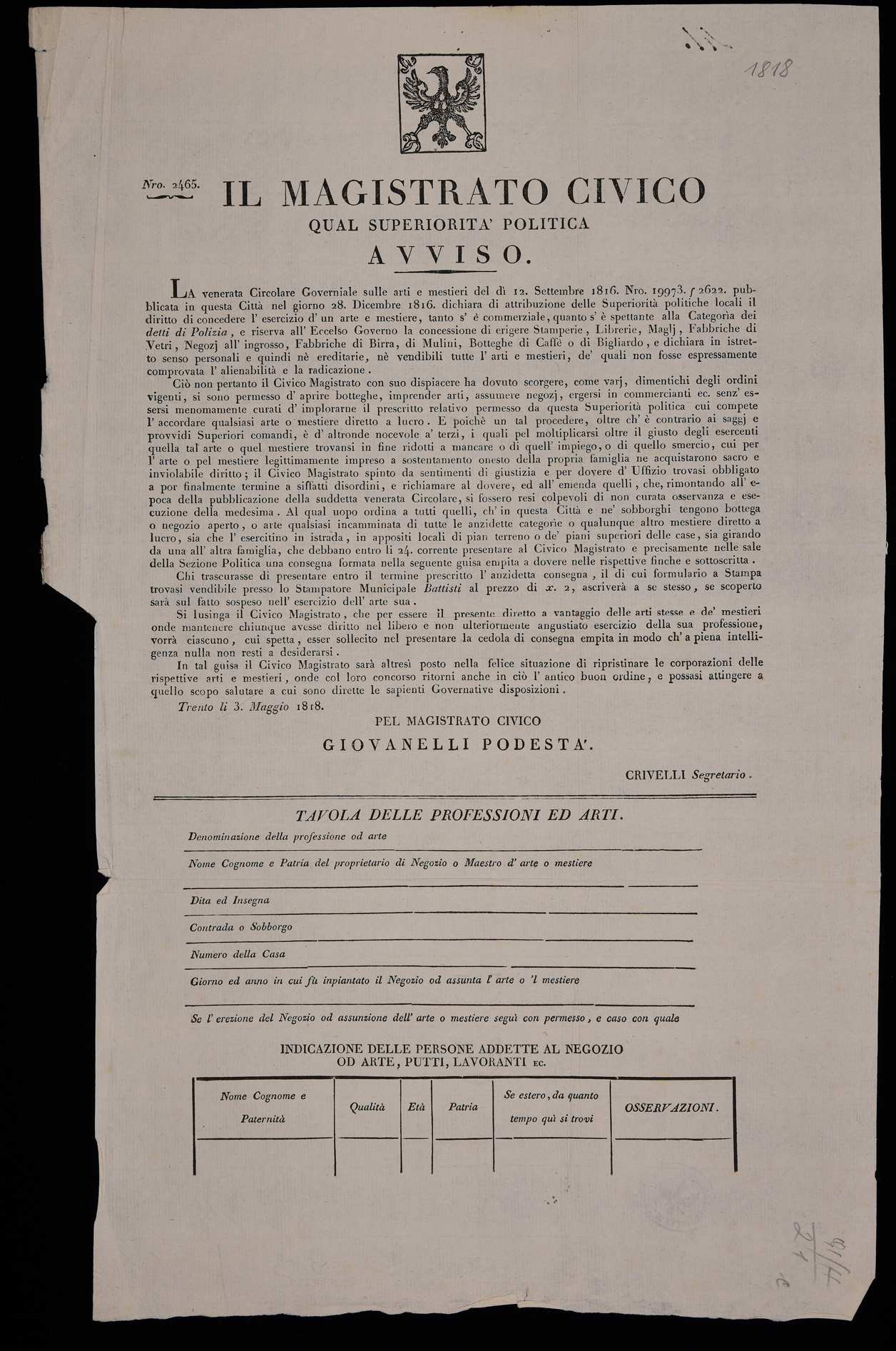 La venerata circolare governiale sulle arti e mestieri del dì 12. settembre 1816. ...