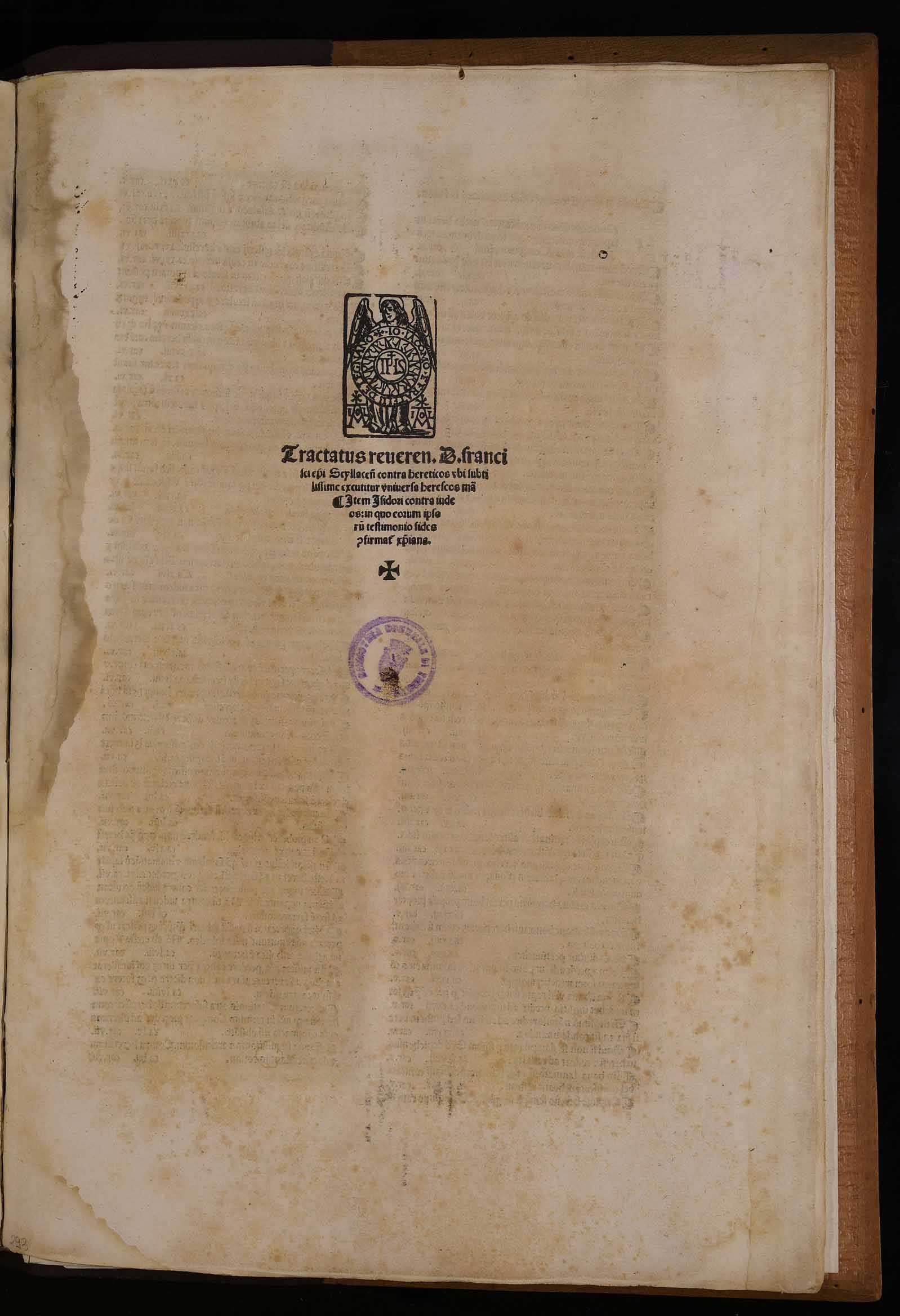 | Tractatus reveren. d. francisci episcopi Scyllacensis contra hereticos ubi subtilissime excutitur universa herescos materia. Item Isidori contra iudeos in quo eorum ipsorum testimonio fides confirmat christiana |