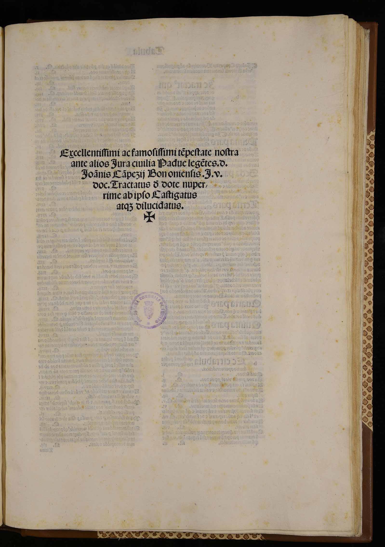 | Excellentissimi ac famosissimi tempestate nostra ante alios iura civilia Padue legentes d. Ioannis Campezij Bononiensis I.U. doc. Tractatus de dote nuperrime ab ipso castigatus atque dilucidatus |