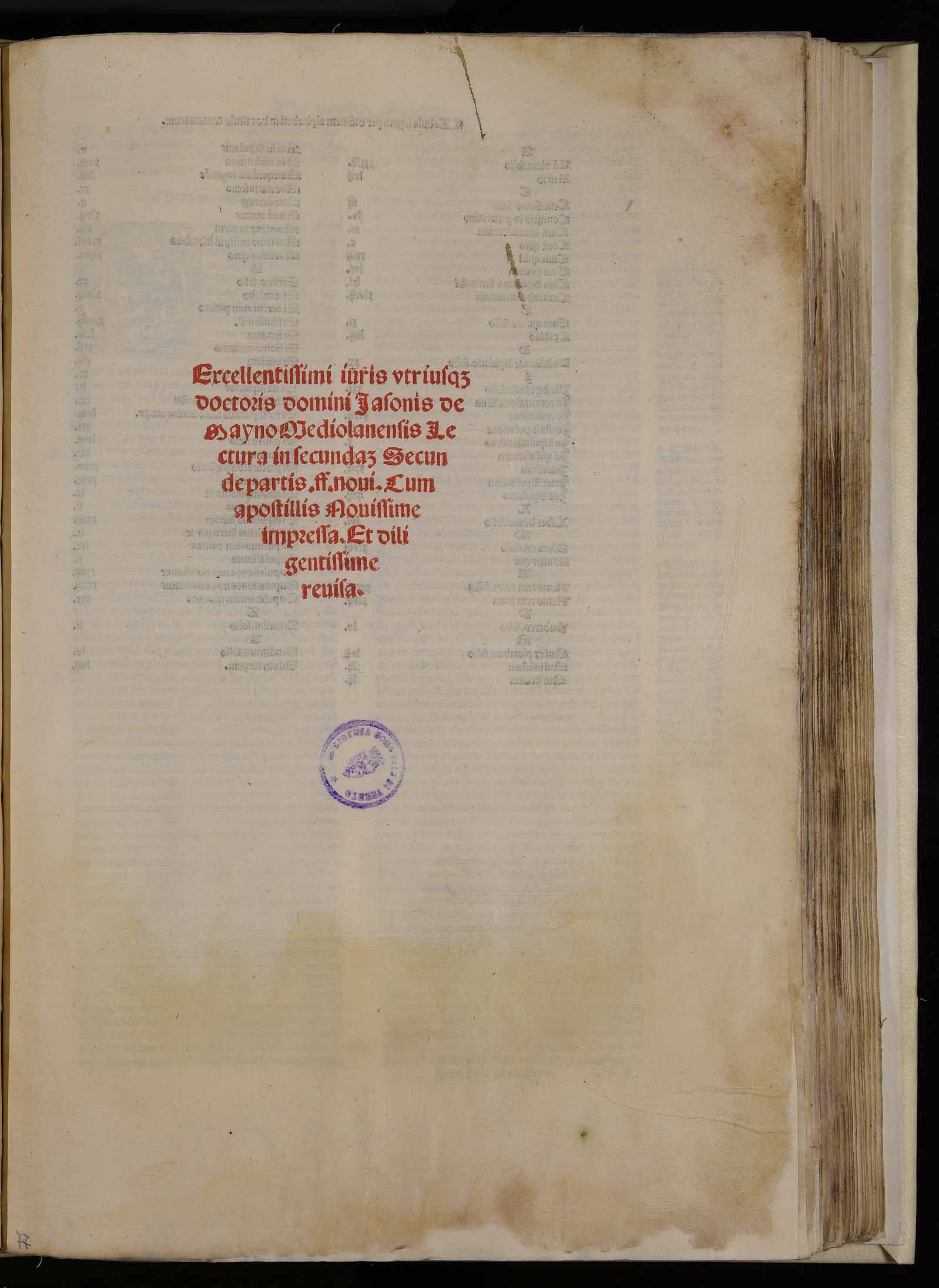 | Excellentissimi iuris utriusque doctoris domini Iasonis de Mayno Mediolanensis Lectura in secundam secunde partis ff. novicum apostillis novissime impressa et diligentissime revisa |
