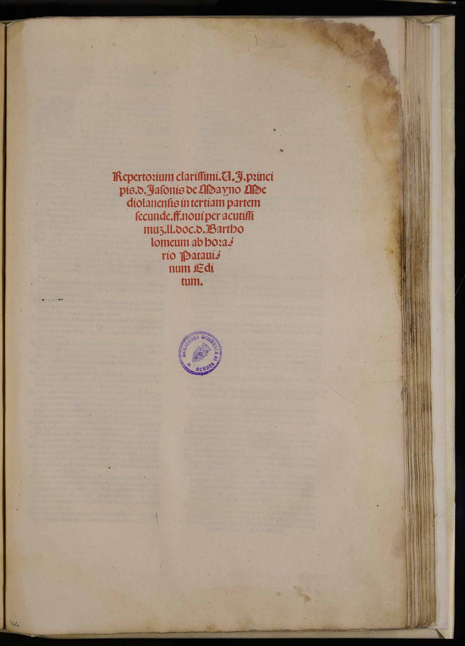 | Repertorium clarissimi U.I. principis d. Iasonis de Mayno Mediolanensis in tertiam partem secunde ff. novi per acutissimum ll. doc. d. Bartholomeum Ab Horario Patavinum editum |