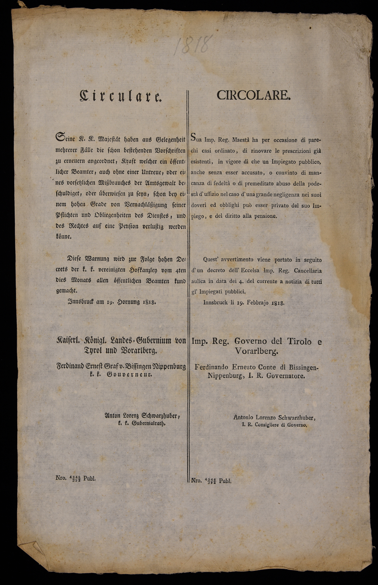 Seine K.K. Majestät haben aus Gelegenheit mehrerer Fälle die schon bestehenden Vorschriften zu erneuern angeordnet ...