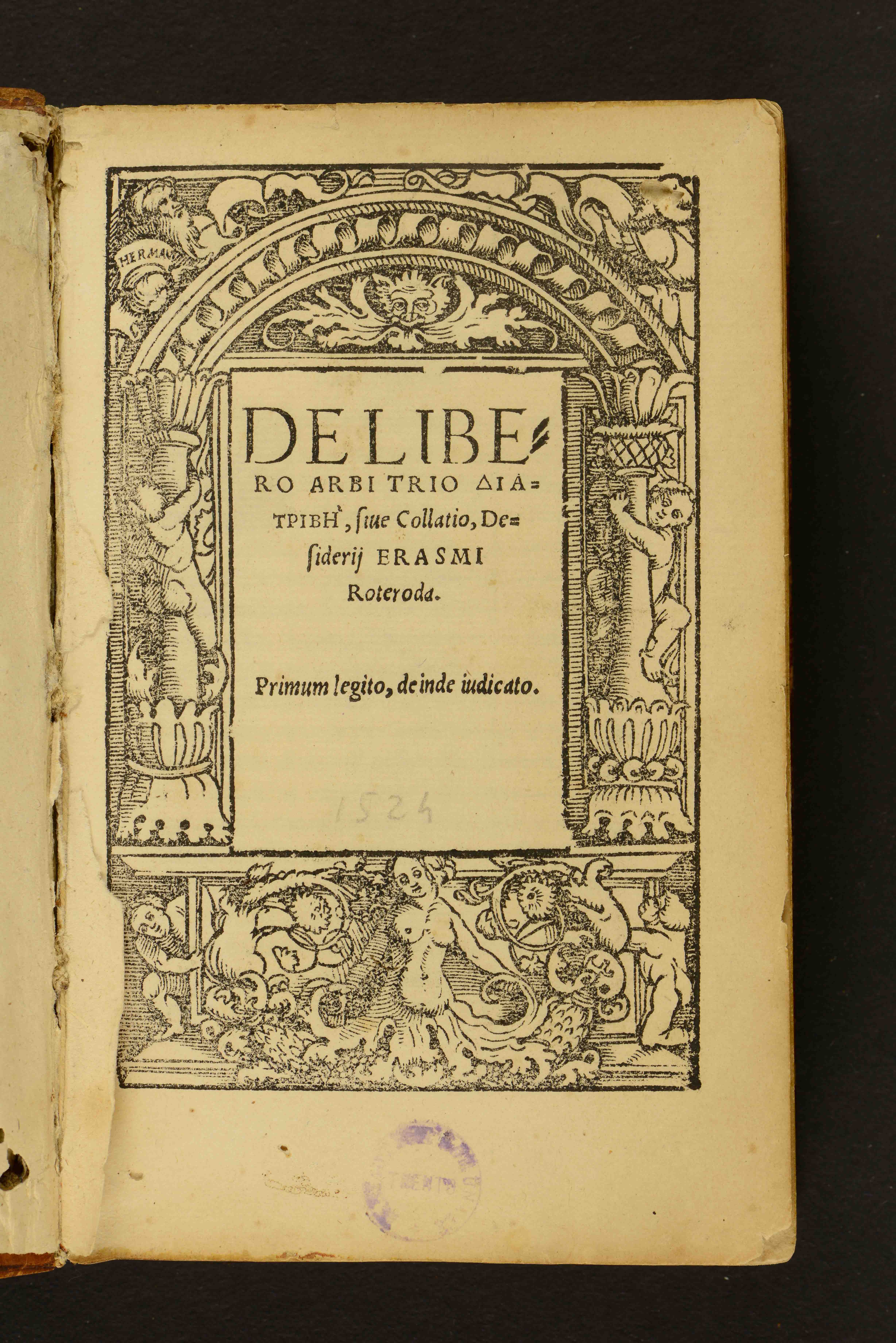 Legatura in piena pelle con impressioni del XVI sec., 165x105x35 mm. Dorso titolato. Legato in un volume fattizio composto da 2 opere . Antiche segnature di collocazione: 229 l 7, I 45 f 20.