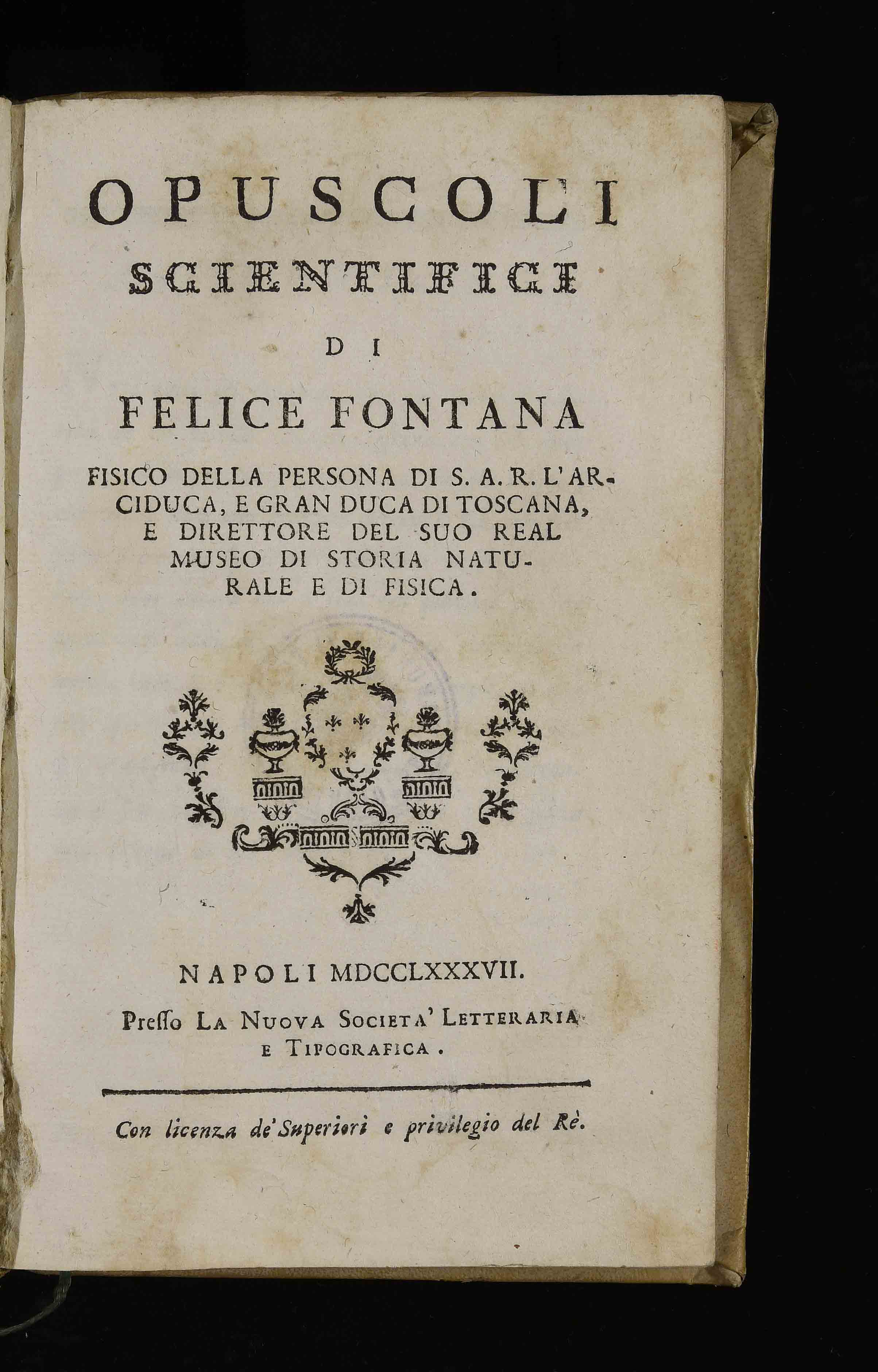 | Opuscoli scientifici di Felice Fontana fisico della persona di S.A.R. l'arciduca, e gran duca di Toscana, e direttore del suo real Museo di storia naturale e di fisica |