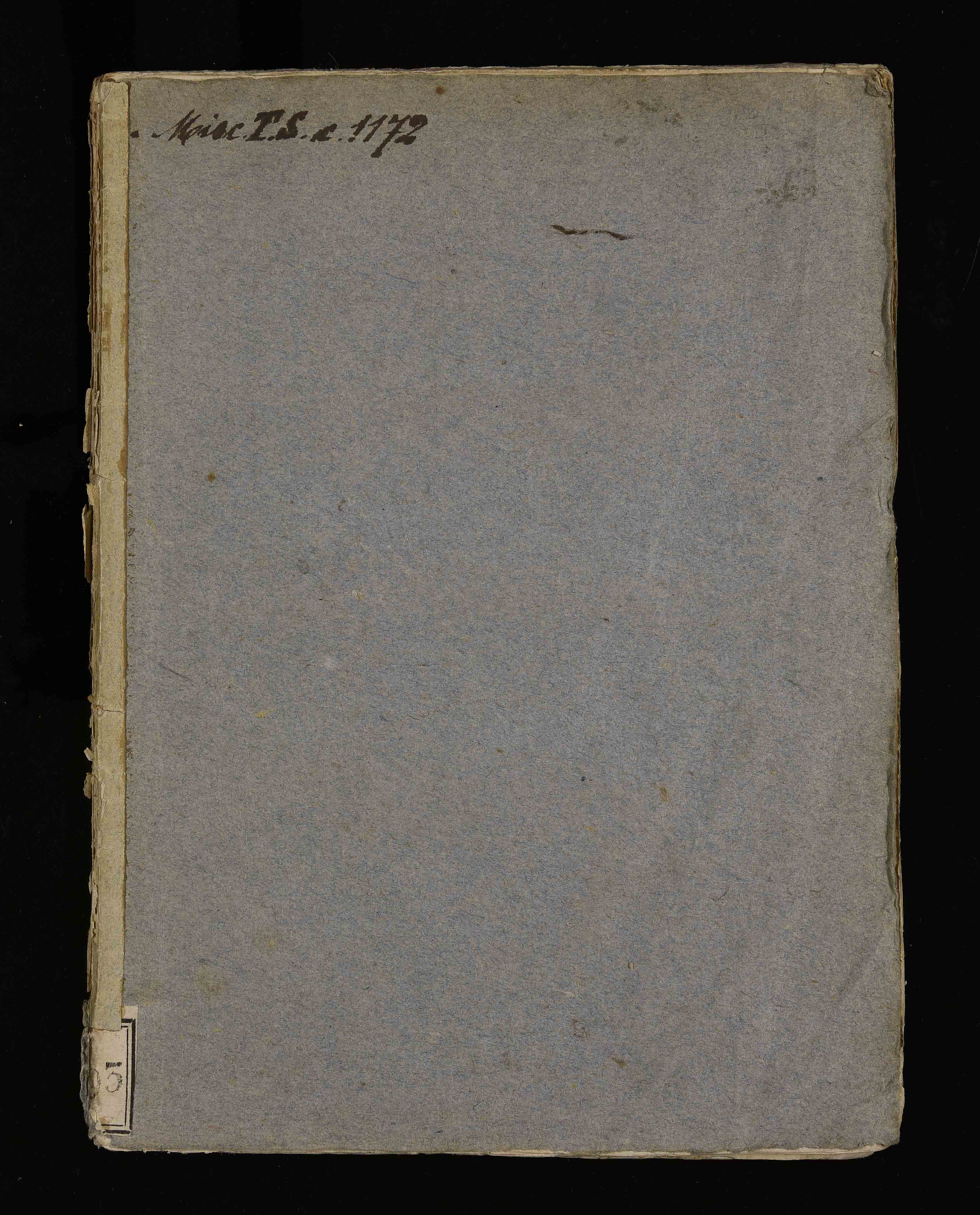 Legatura in cartoncino, etichetta con antica segnatura di collocazione sul sul dorso. Provenienza: collezione Antonio Mazzetti. Antiche segnature di collocazione: 3893; Misc. T.S. c. 1172