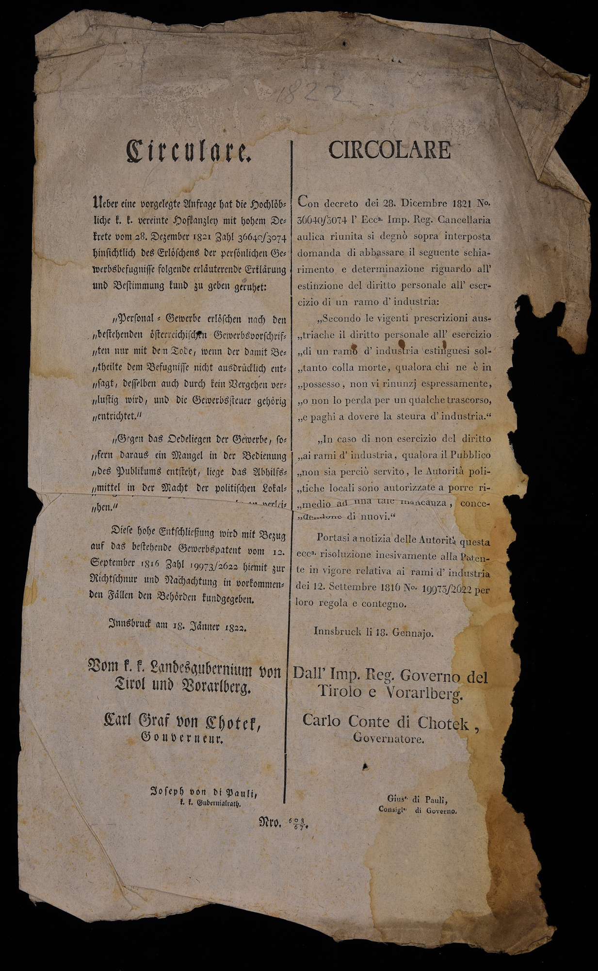 Ueber eine vorgelegte Anfrage hat die hochlöbliche k.k. vereinte Hofkanzley ...