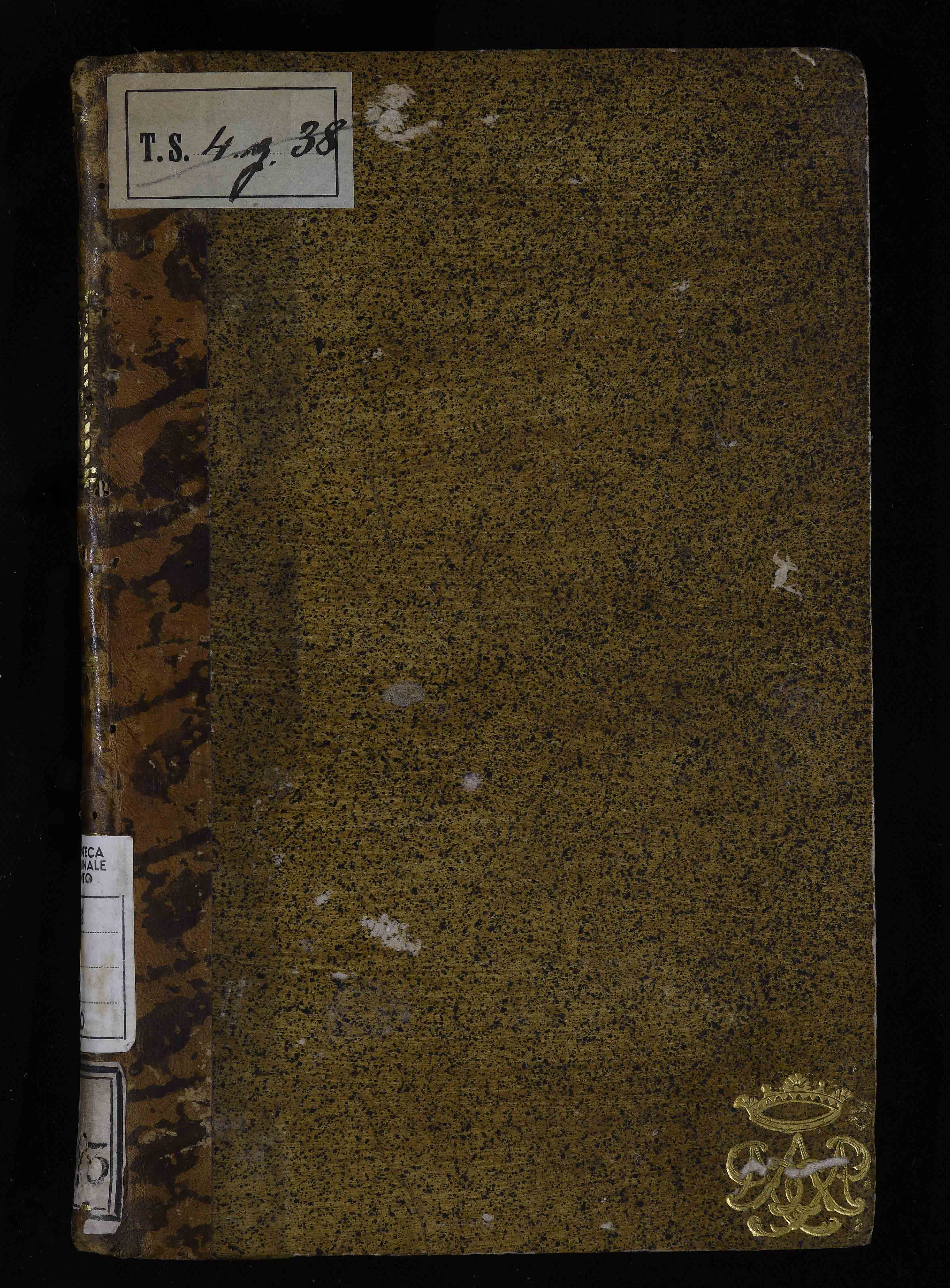 Legatura in cartone. Sulla controguardia anteriore ex libris di Antonio Facipecora Pavesi. Sulla controguardia posteriore note ms. Etichetta con antica segnatura di collocazione sul sul dorso. Provenienza: collezione Antonio Mazzetti. Antiche segnature di collocazione: 3745, antica segnatura di collocazione: T.S.4.f.43