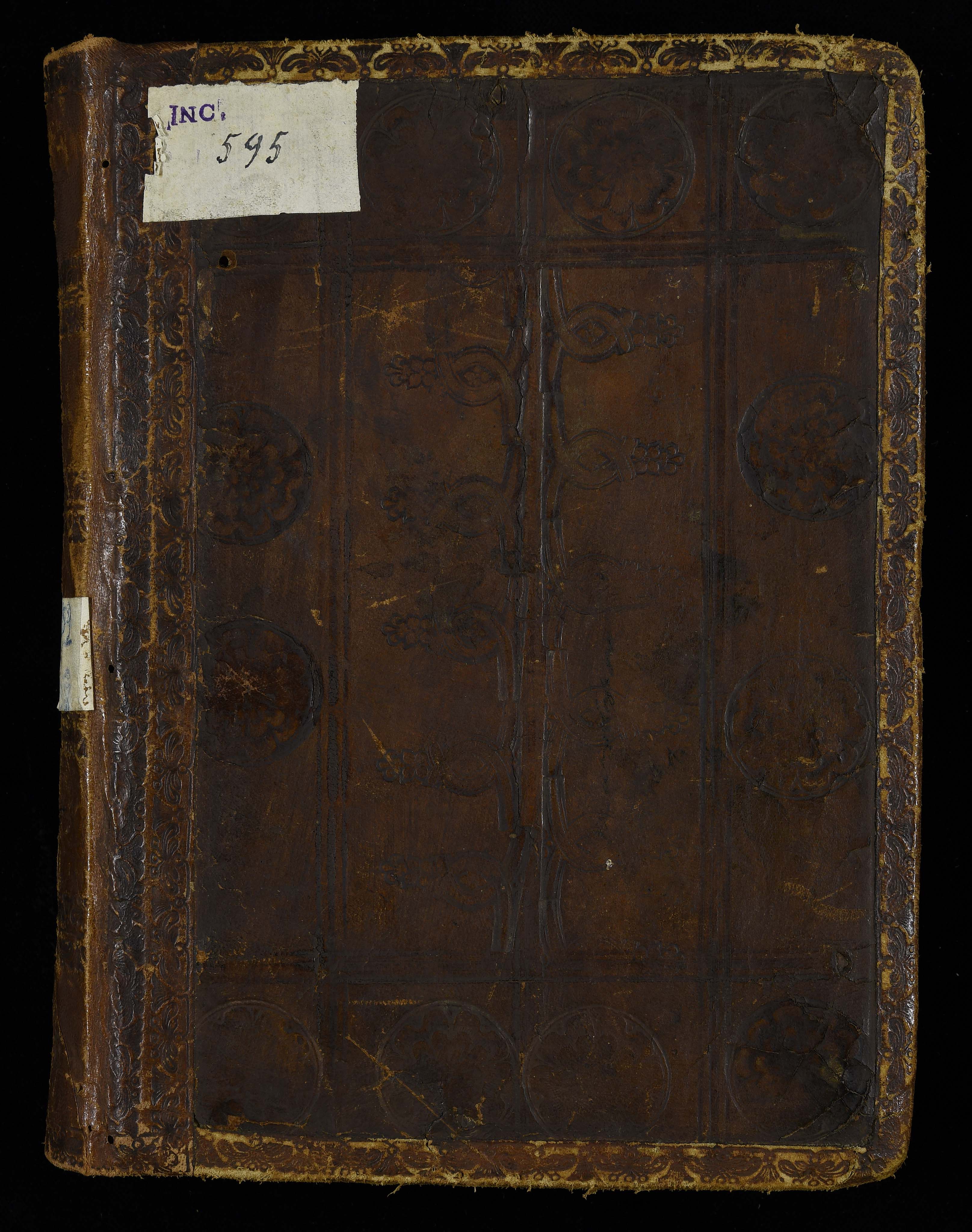 Tracce di una legatura del XVI sec., in piena pelle, postille, Sul verso della seconda c. di guardia anteriore Procurato da don Felice Sardagna cor. 16, 15/1 1910, manca il primo foglio