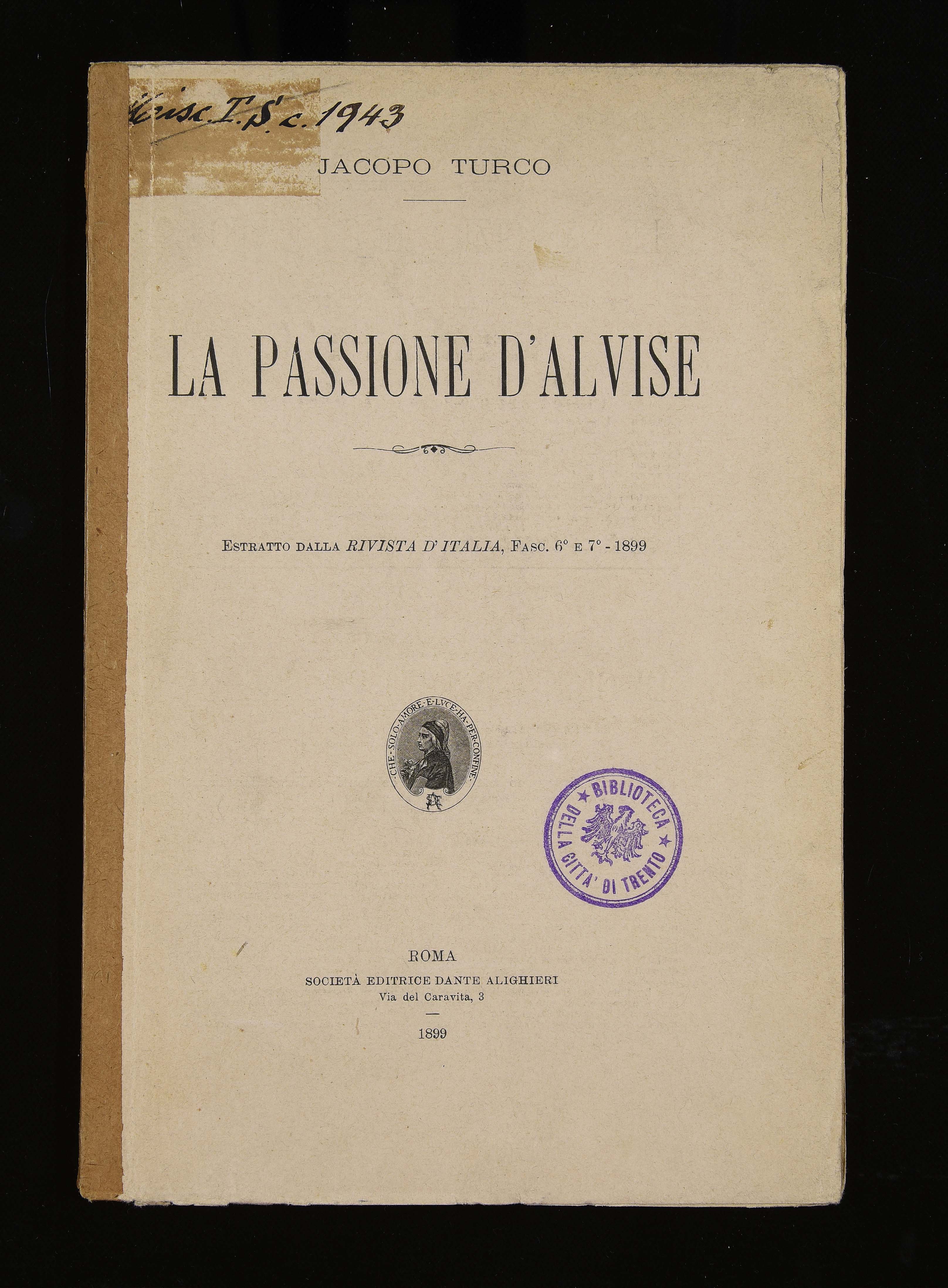 Legatura editoriale rinforzata al dorso (24,2 cm). Sul verso del frontespizio nota manoscritta: Dono del co. Aldo Alberti Poia come erede del M.o Raff. Lazzari 1924
