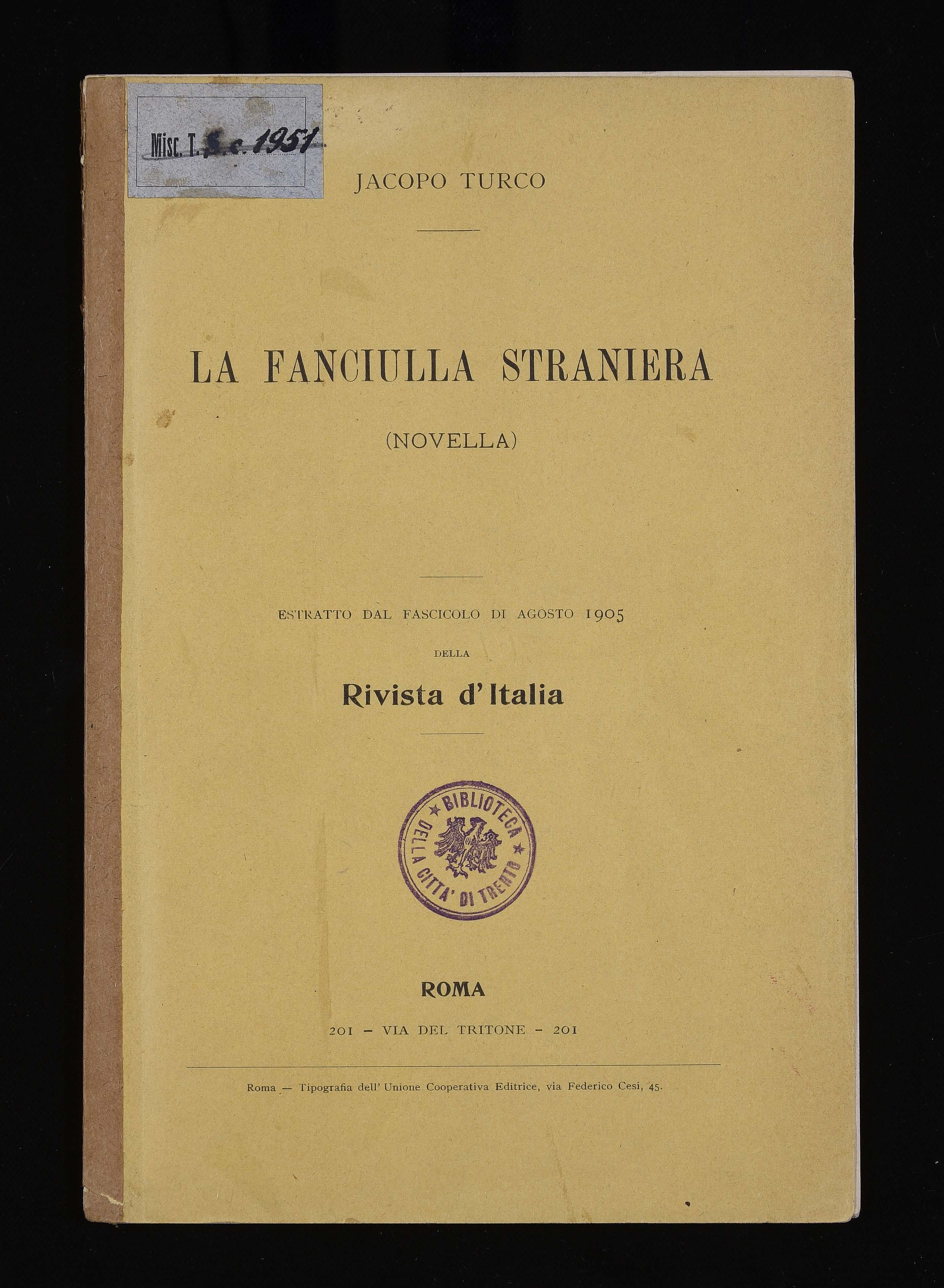 Estratto dalla Rivista d’Italia. 1905, agosto; p. 45. Il titolo della novella è preceduto dallo pseudonimo Jacopo Turco