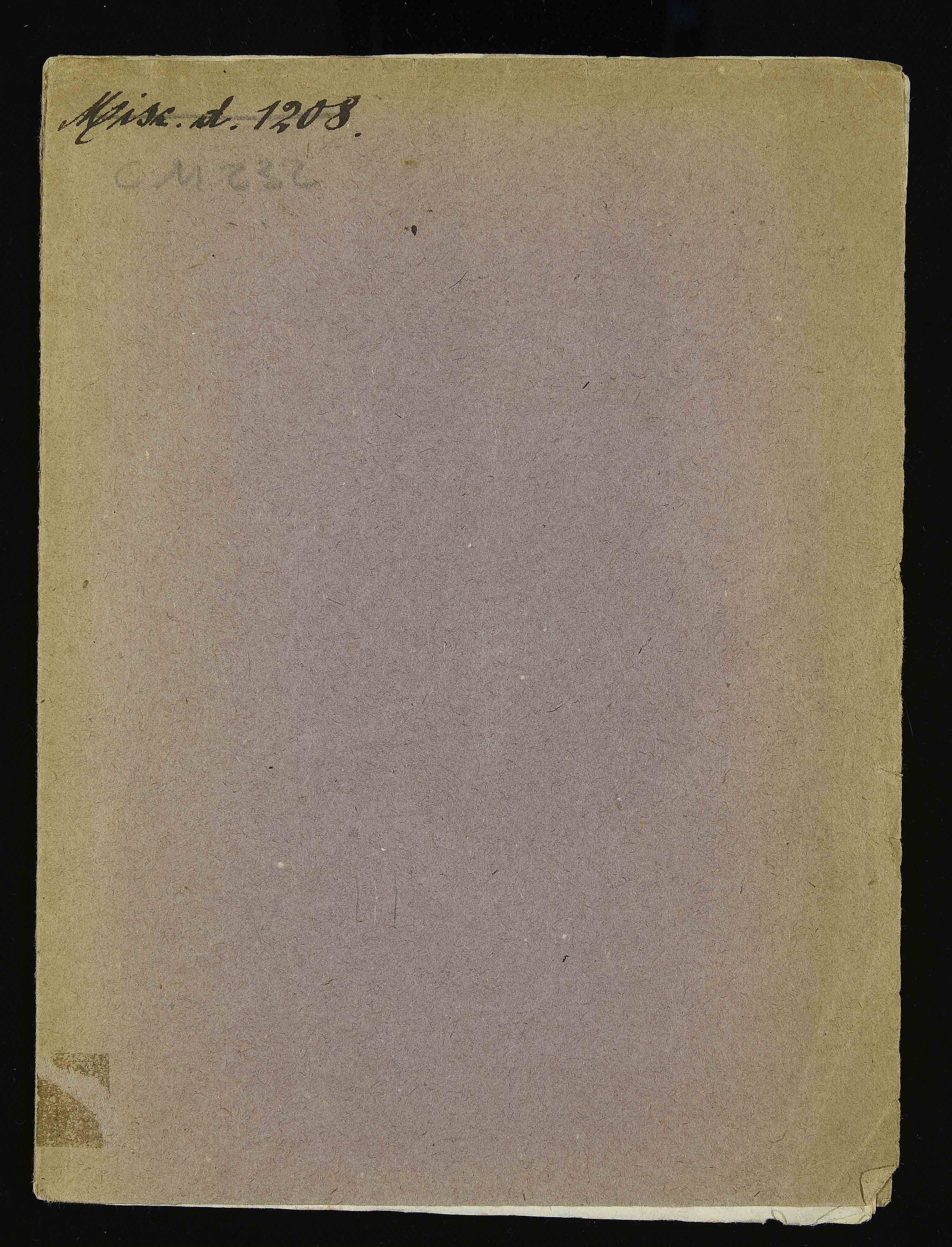 Legatura in cartoncino del XX sec., mm 200x146. Antiche segnature di collocazione: Misc. d. 1208, G 2-op f 228.