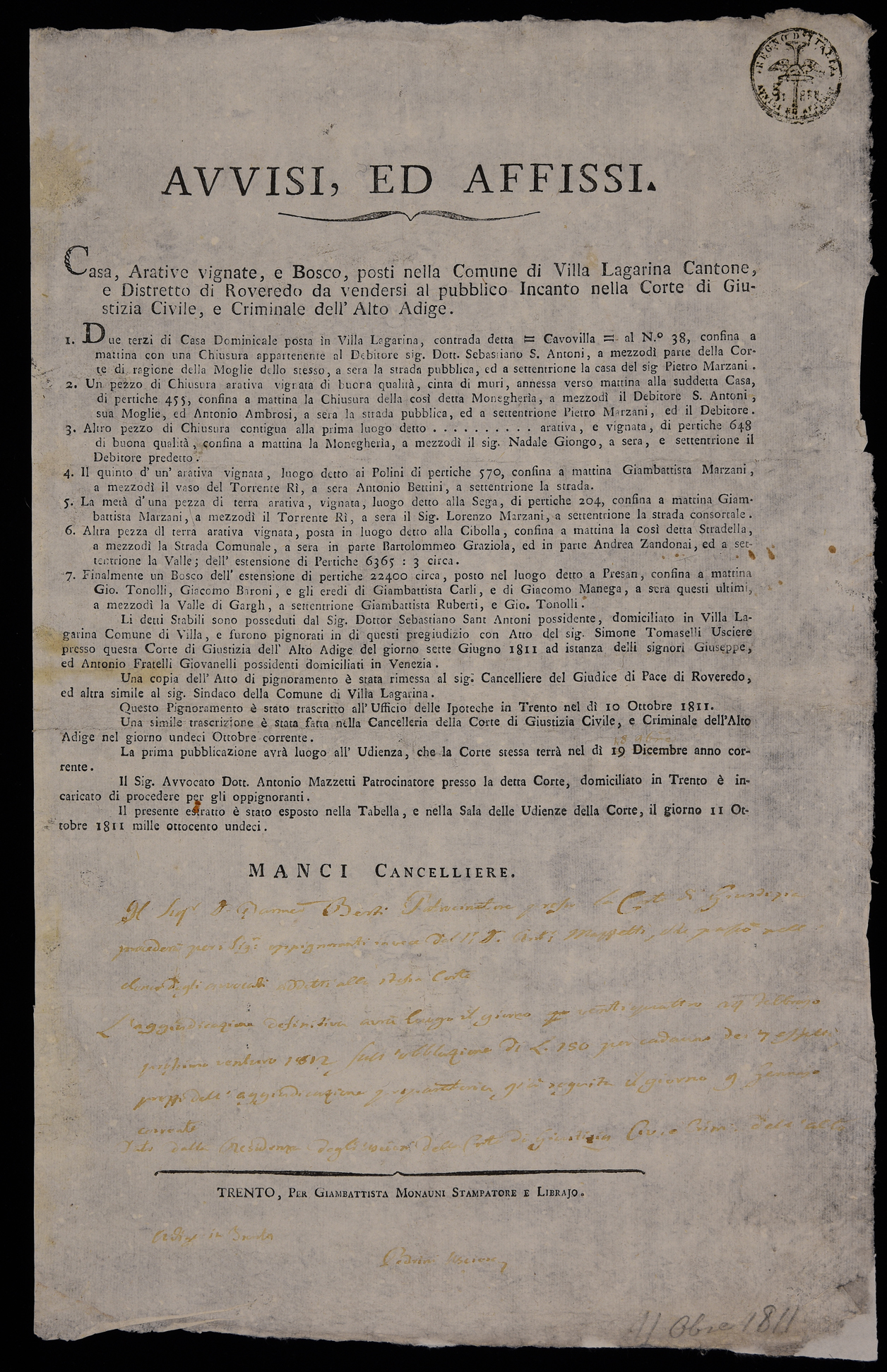 Casa, arative vignate e bosco, posti nella comune di Villa Lagarina ...