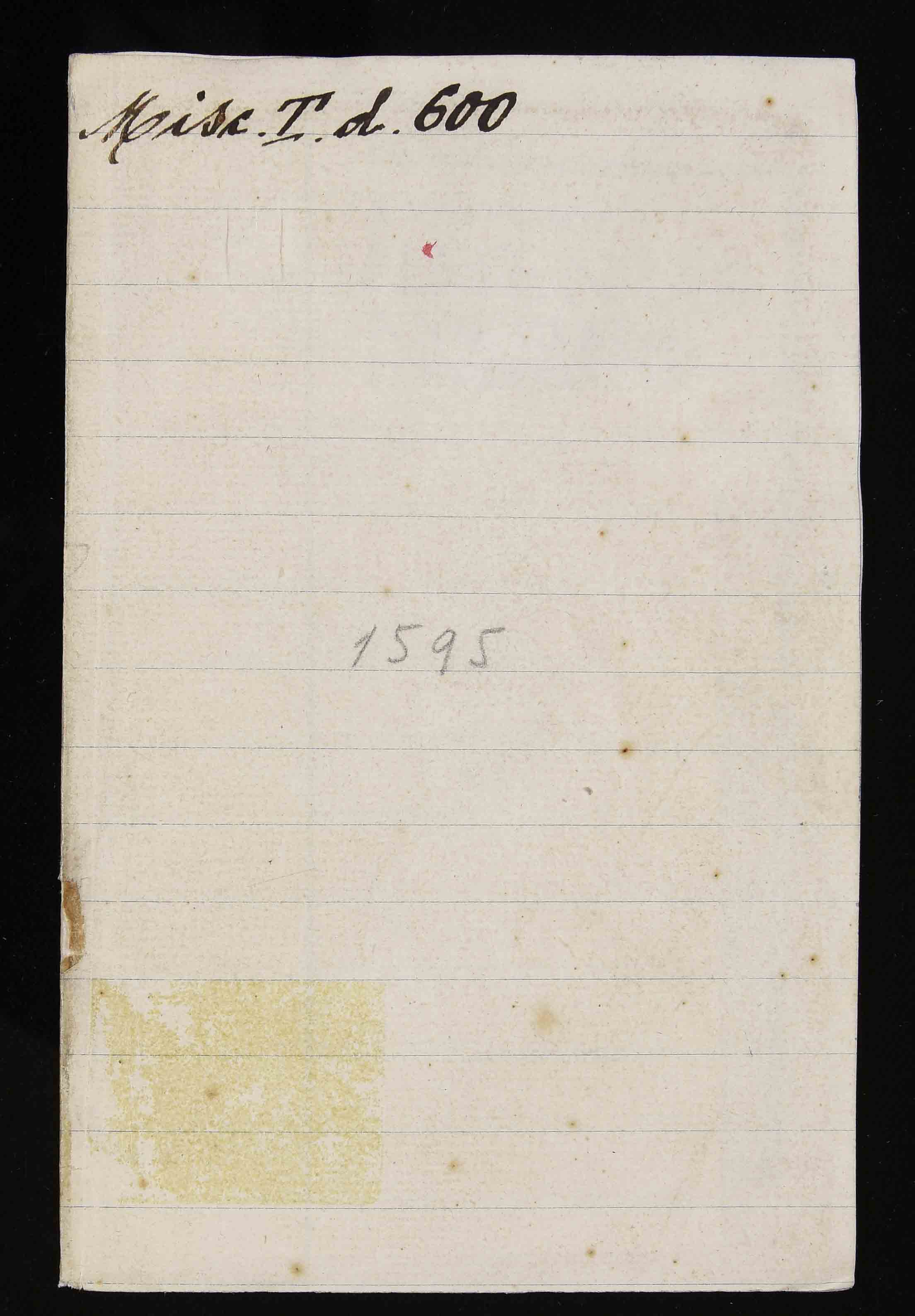 Legatura in carta del XX sec., 150x95x2 mm. Antica cartulazione manoscritta: l'opera era quindi precedentemente legata in un volume fattizio. Precedente segnatura di collocazione: Misc. T.d. 600.