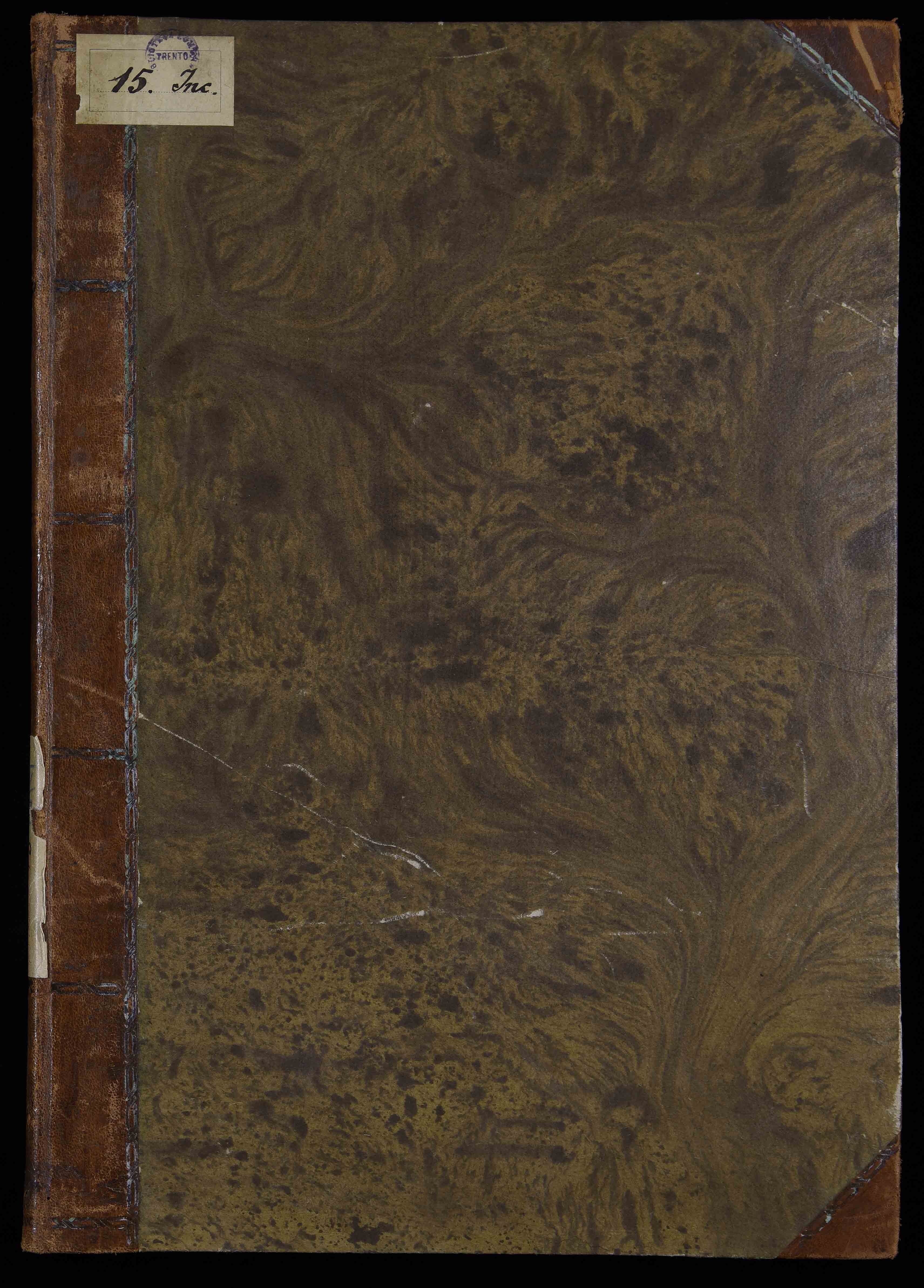 Legatura del XIX sec., prima metà, in carta su cartoni, 380x540x10 mm; dorso e angoli in pelle, taglio tinto in rosso. Rare postille marginali di Bernardo Cles (parzialmente asportate dalla rifilatura), rari segni d’attenzione e sottolineature. Manca la c. a1 (bianca). Precedente segnatura di collocazione: Inc. 15. Appartenuto al vescovo Bernardo Cles (cfr. Biblioteca del cardinale 1985 , scheda 14) e alla Biblioteca vescovile (cfr. Hausbergher 2001 , scheda 30 e Incunaboli della Biblioteca comunale 2006 , scheda 27), il volume fu trasportato nel 1810 presso il Seminario vescovile e passò quindi alla Biblioteca comunale.