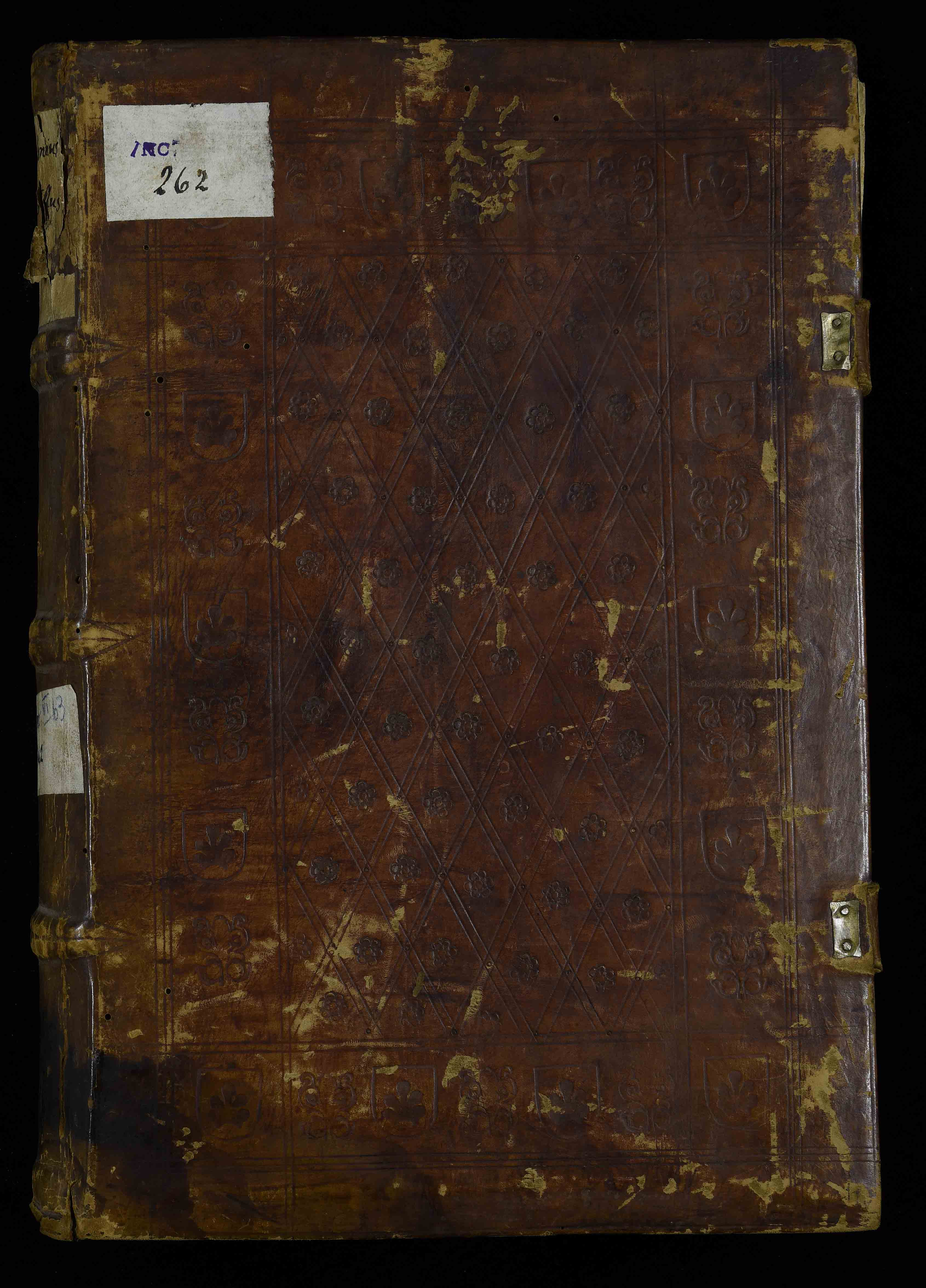 Legatura del XV sec., ultimo quarto, alle armi della famiglia Frundsberg, in piena pelle su assi con impressioni, 320x465x45 mm; autore, titolo e data di stampa manoscritti su cartiglio sul dorso. Errori nella legatura dei fascicoli M (cc. M2 e M5 invertite) e O (cc. O1 e O6 invertite). Precedenti segnature di collocazione: I 38 c 6, Inc. 262. Appartenuto al vescovo Ulrich Frundsberg e alla Biblioteca vescovile (cfr. Hausbergher 2001 , scheda 322 e Incunaboli della Biblioteca comunale 2006 , scheda 256), il volume fu trasportato nel 1810 presso il Seminario vescovile e passò quindi alla Biblioteca comunale.