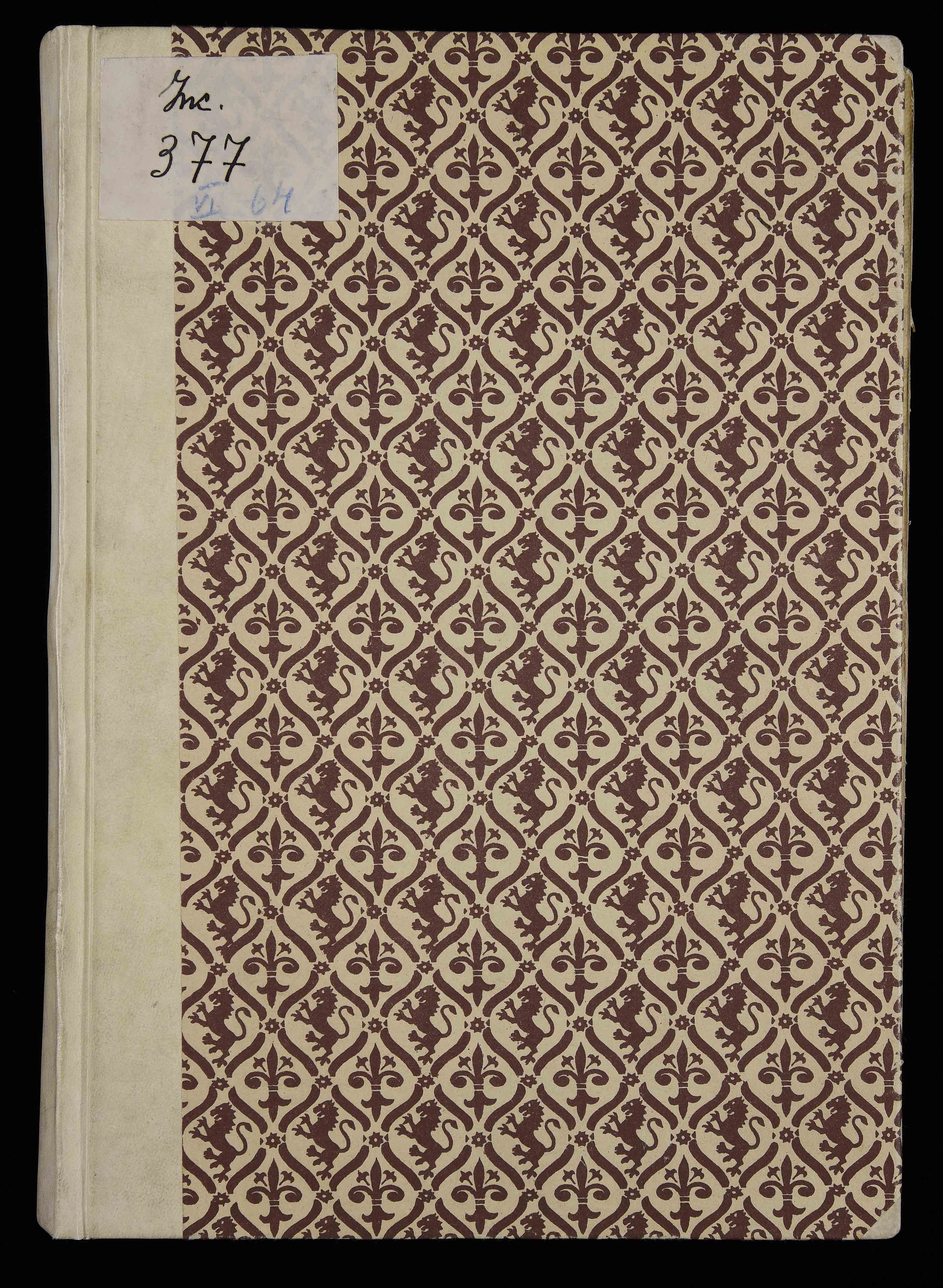 Legatura del XX sec., prima metà, in carta su cartoni, 315x495x50 mm; dorso e angoli in pergamena. A c. a2r probabile indicazione per il rubricatore: "Rubeus"; rare postille marginali. Una iniziale ornata blu campita in oro su riquadro a profili di colore rosso e verde con fregi marginali a volute (c. a2r); iniziali semplici in rosso. Mancano i volumi 2-3. Precedenti segnature di collocazione: I 40 e 25, Inc. 377, VI 64. Appartenuto alla Biblioteca vescovile di Trento (cfr. Hausbergher 2001 , scheda 246 e Incunaboli della Biblioteca comunale 2006 , scheda 309), il volume fu trasportato nel 1810 presso il Seminario vescovile e passò quindi alla Biblioteca comunale.