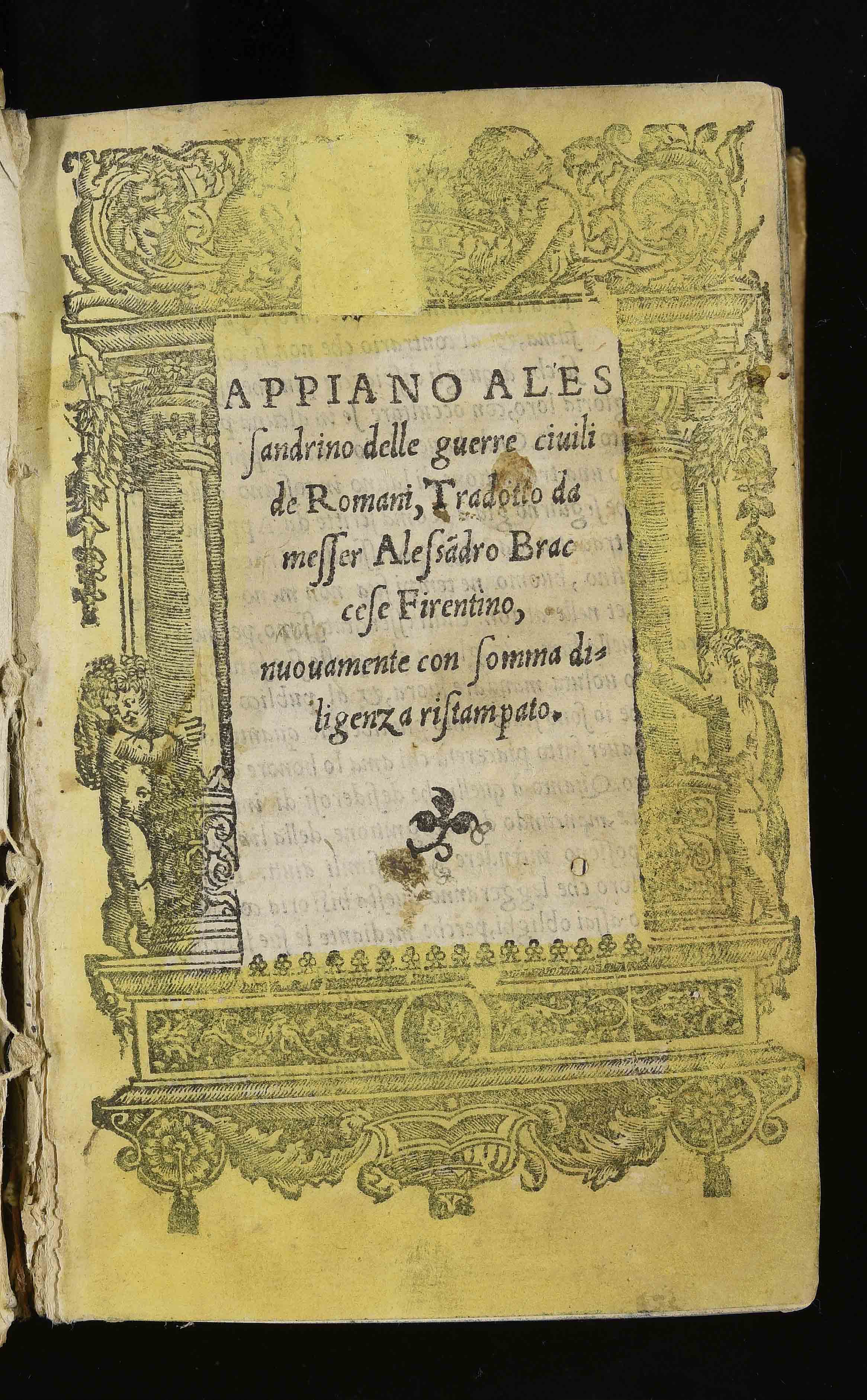 | Appiano Alessandrino Delle guerre civili de Romani, tradotto da messer Alessandro Braccese firentino [sic], nuovamente con somma diligenza ristampato |