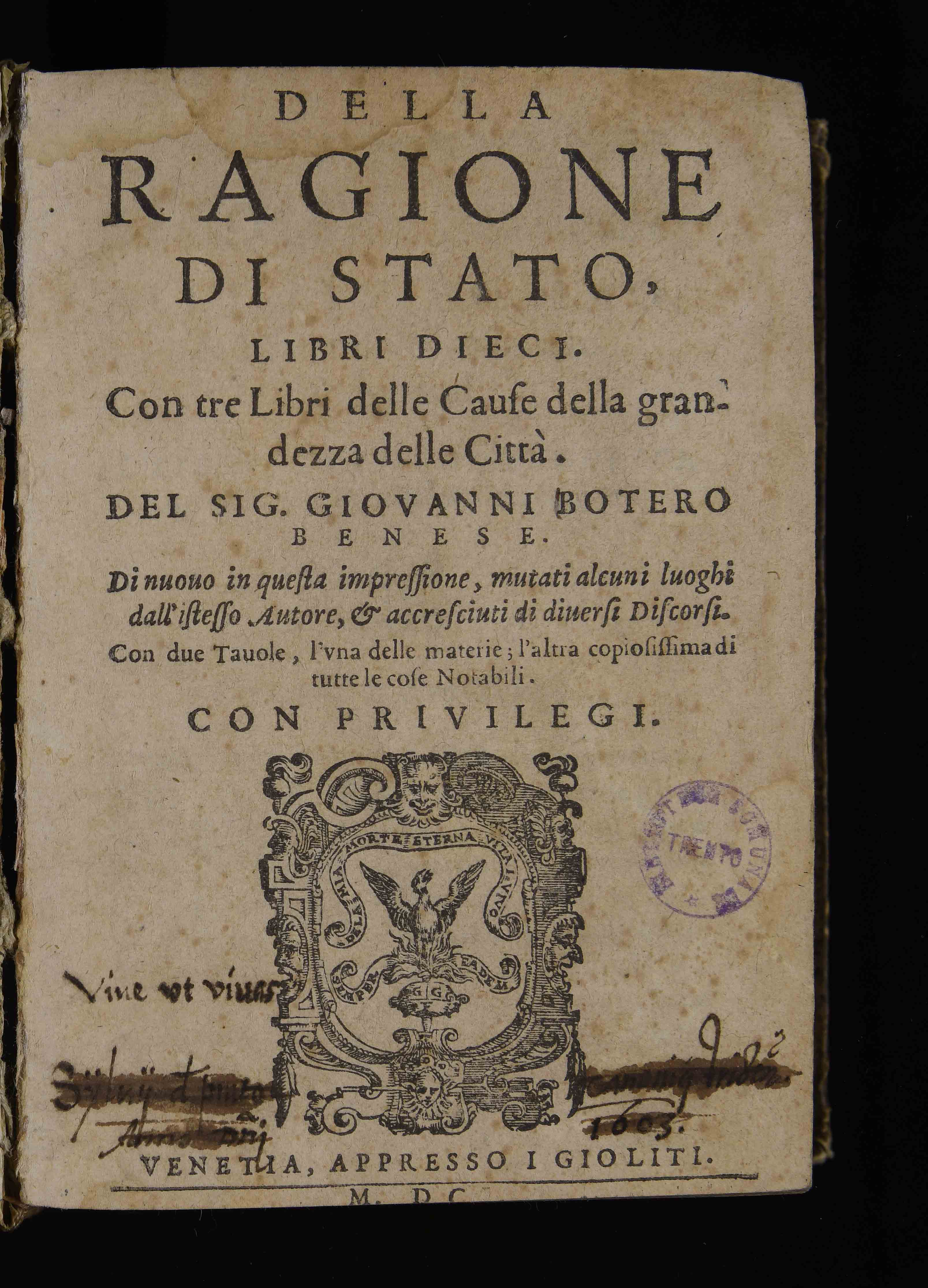 | Della ragione di stato, libri dieci. Con tre libri delle cause della grandezza delle città del sig. Giovanni Botero benese |