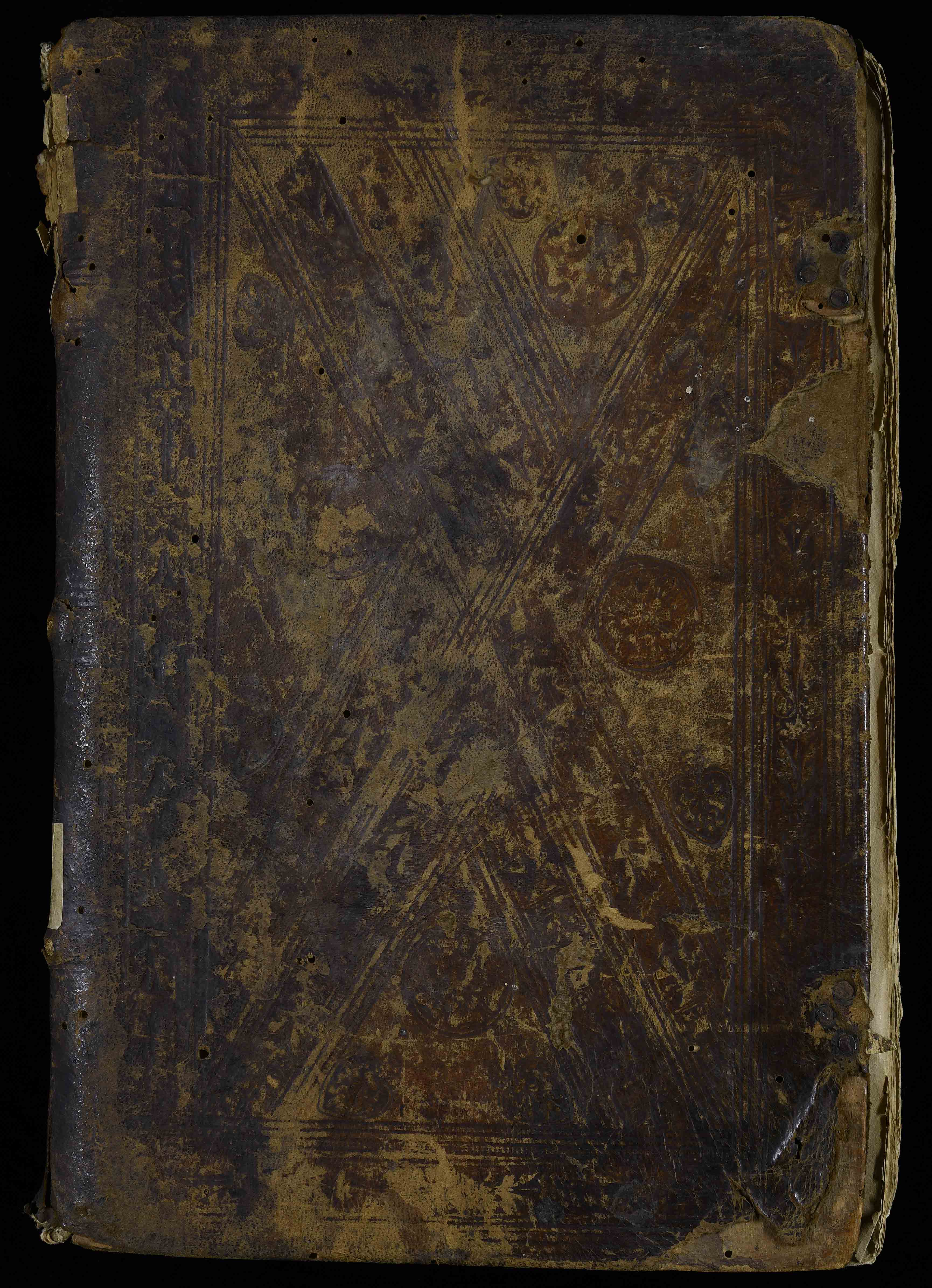 Legatura in piena pelle su assi del XVI sec., 315x210x63 mm. Segnacoli in pergamena. Sulla controguardia anteriore, note ms. e tetragramma con notazione musicale; sulla carta di guardia anteriore, notizie ms. della famiglia Fontanari di Costasavina di data 1577-1584; sulla controguardia posteriore, altre note ms. Mancano le cc. [croce]1 (frontespizio), [croce]12, a1 e D6 (probabilmente bianca); diverse postille di mani diverse, sottolineature. Primo fascicolo, c. a8 e D1 staccate. Antica segnatura di collocazione: I 43 d 2, 234 b 16.