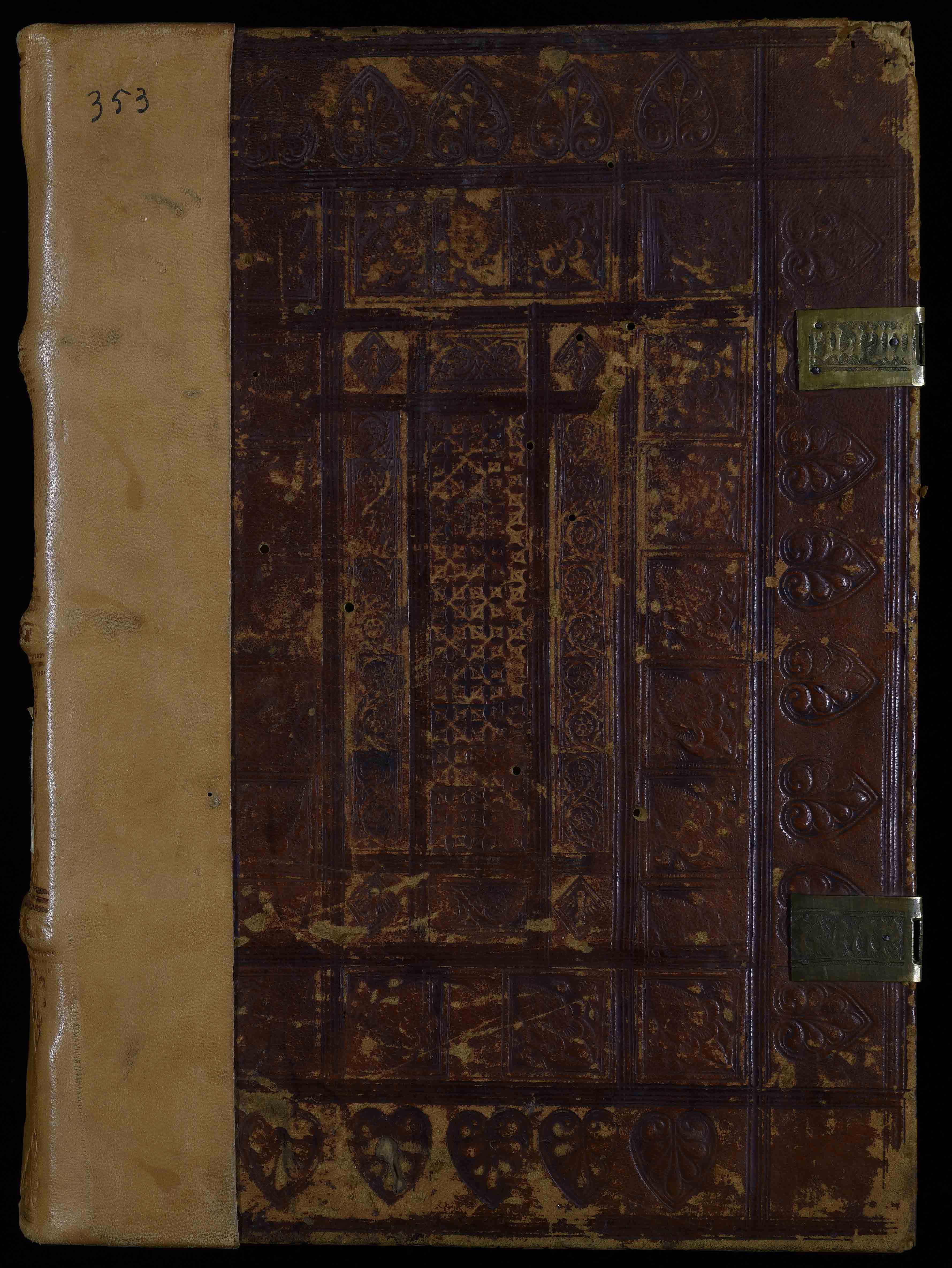 Legatura del XV sec., ultimo quarto, in piena pelle su assi in legno con impressioni, 305x510x90 mm.; dorso rivestito nel sec. XIX con pelle di vitello. Postille marginali di Johannes Hinderbach, segni d'attenzione e sottolineature alle cc. [61-3]. Precedenti segnature di collocazione: I 38 d 8, Inc. 353, VII 1.