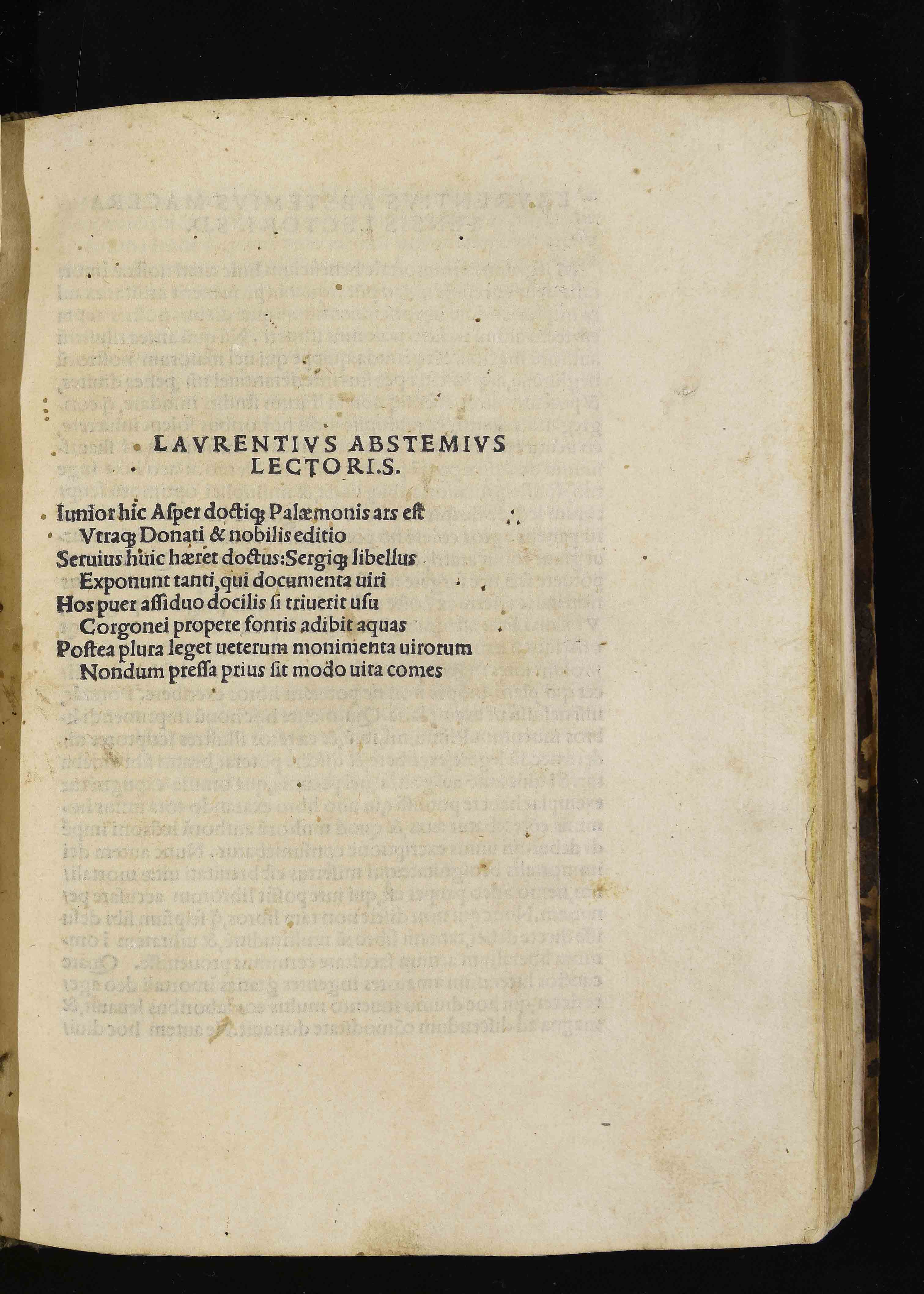 Laurentius Abstemius lectori S. : Iunior hic Asper doctique Palaemonis ars...