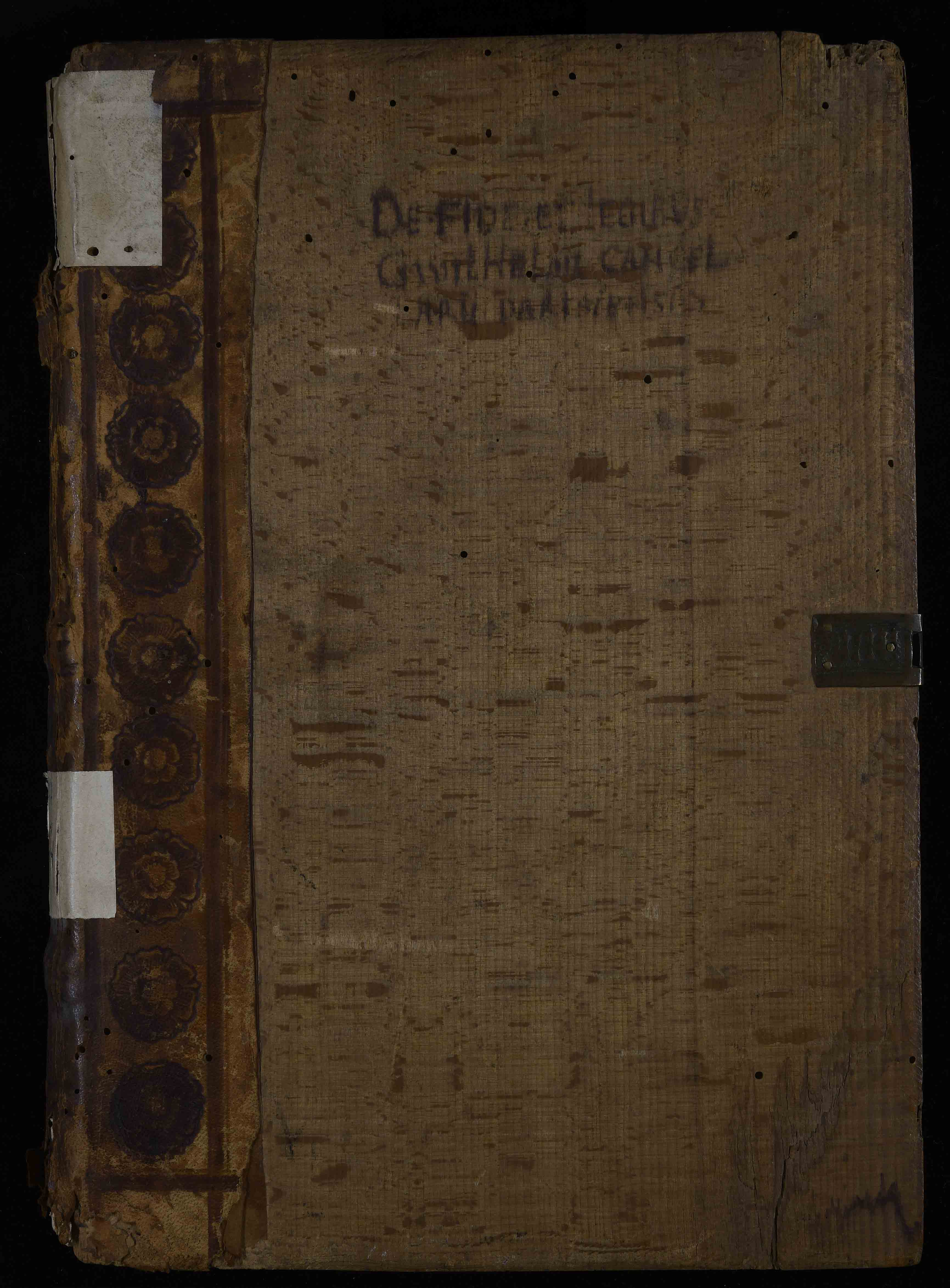 Legatura del XV sec., ultimo quarto, in mezza pelle su assi in legno, 310x470x45 mm. Autore e titolo manoscritti sul piatto anteriore; rare postille marginali e lievi lacune fino a c. [610] per danni da insetti. Precedenti segnature di collocazione: I 39 d 11, Inc. 554, VI 77.