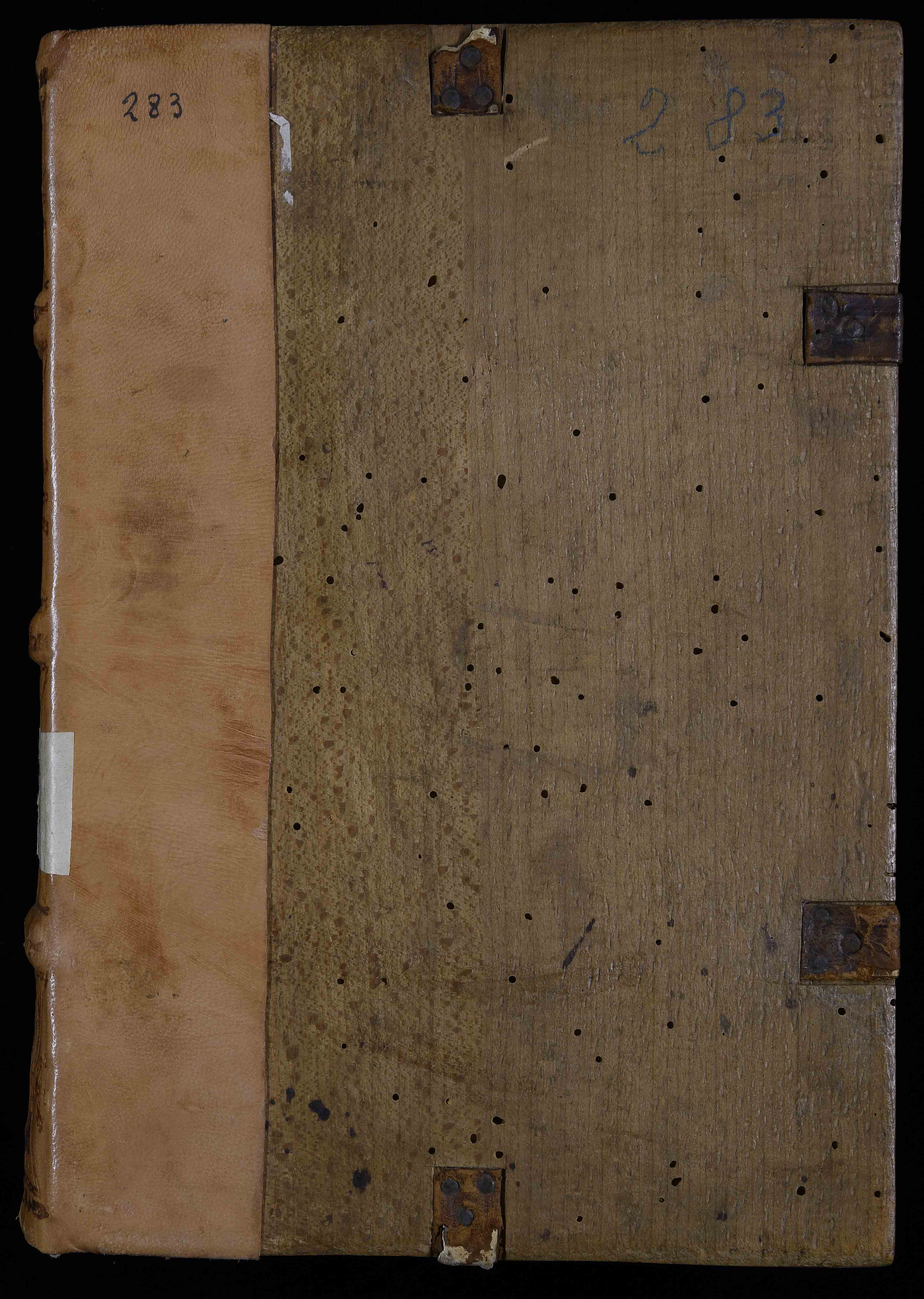 Tracce di una legatura del XVI sec., primo quarto, in mezza pelle su assi in legno, 330x510x60 mm; la pelle di copertura, che ricopriva il piatto per meno di un quarto, è stata sostituita nel sec. XIX con pelle di vitello. Autore manoscritto sul taglio di testa. Titolo manoscritto a c. a1r; alcune postille marginali di Bernardo Cles e di altre mani; segni di attenzione e sottolineature. Precedenti segnature di collocazione: I 40 c 12, Inc. 283, V 16. Appartenuto al vescovo Bernardo Cles (cfr. Biblioteca del cardinale 1985 , scheda 216) e alla Biblioteca vescovile (cfr. Hausbergher 2001 , scheda 304 e Incunaboli della Biblioteca comunale 2006 , scheda 392), il volume fu trasportato nel 1810 presso il Seminario vescovile e passò quindi alla Biblioteca comunale.