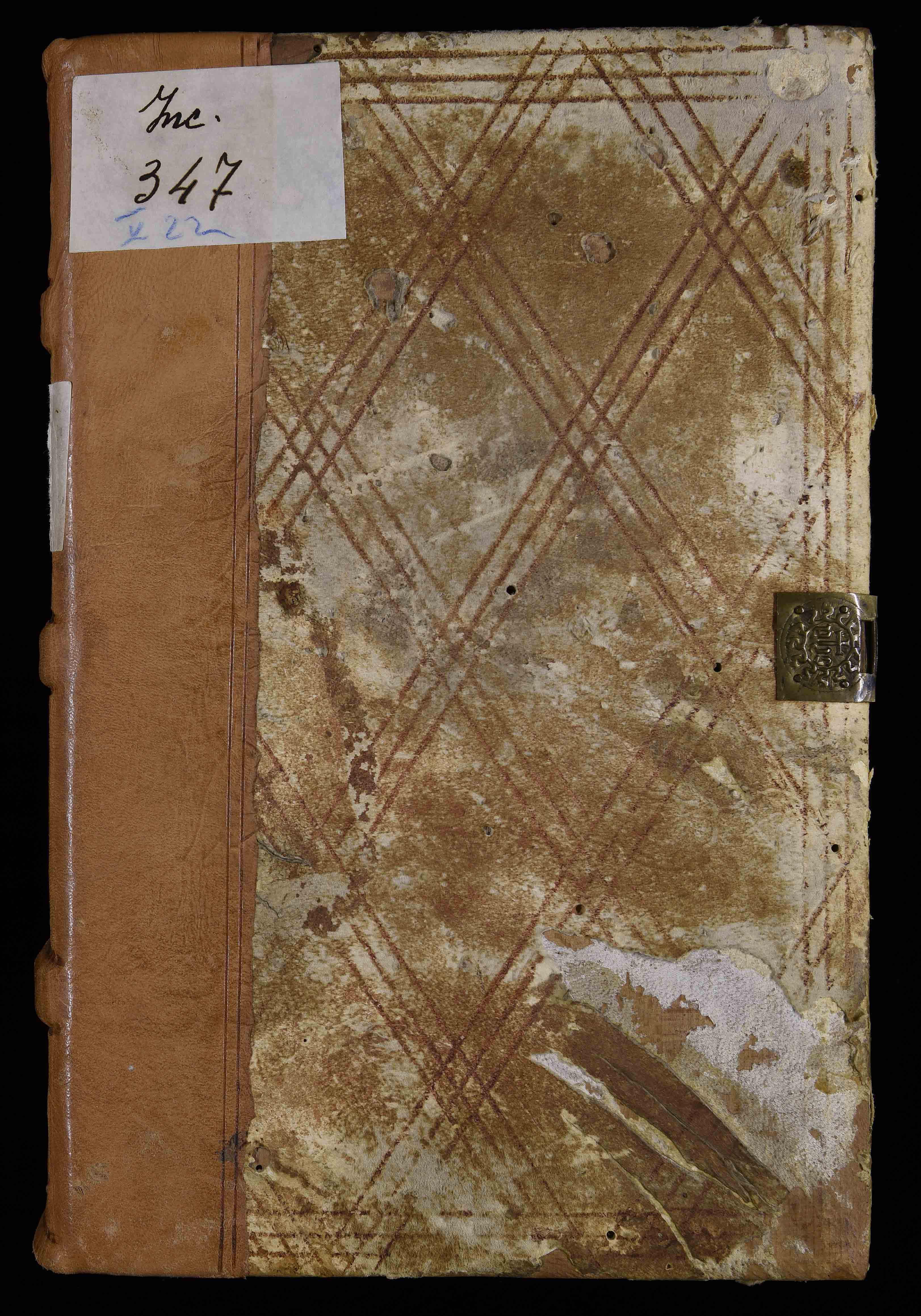 Legatura del XV sec., ultimo quarto, in piena pelle su assi in legno, 315x475x75 mm; dorso rifatto nel sec. XIX in pelle di vitello. Titolo e autore manoscritti sul taglio davanti e a c. a2r. Postille marginali di mano di Johannes Hinderbach, segni d’attenzione e sottolineature soprattutto nella prefazione. Rare iniziali semplici alternativamente in rosso e blu e, ancora più rari, segni paragrafali in rosso. A c. Q6v nota del rubricatore: littere 33. Precedenti segnature di collocazione: I 38 c 7, Inc. 347, V 22.