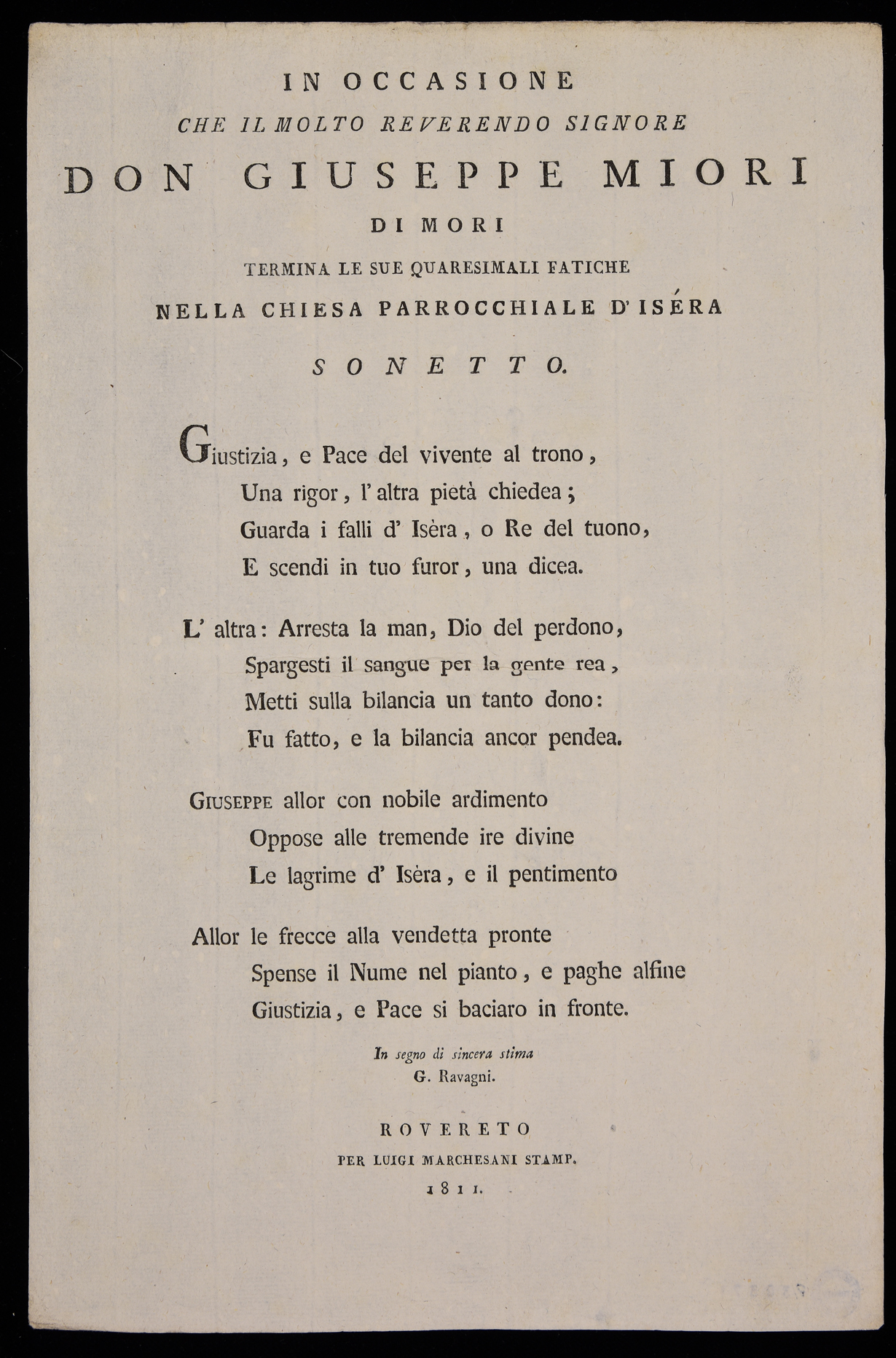 In occasione che il molto reverendo signore don Giuseppe Miori di Mori...