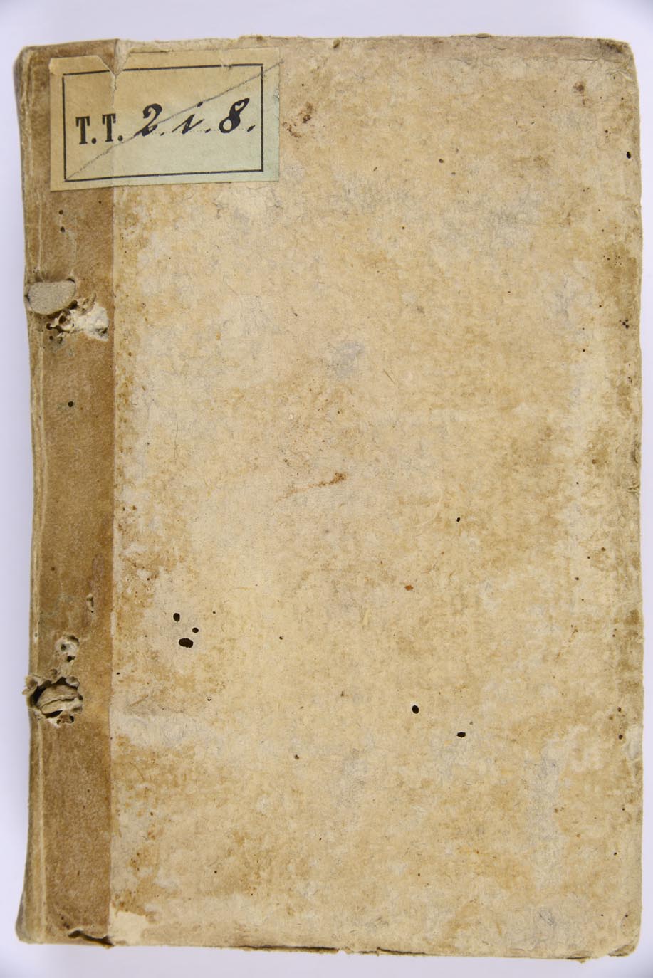 Legatura in cartoncino rigido con rinforzo di pergamena al dorso, traccia di talloncino cartaceo al dorso, prove di penna al piatto posteriore, tagli con spruzzi di inchiostro blu, carta di guardia ant. e post., mm. 160x110x40, ex libris della Biblioteca sul verso del piatto anteriore. Esemplare privo delle cc. A4-A5, timbro della Biblioteca al frontespizio e a c. 2I8v, numero d’inventario x/1875 a c. 2I8v. Provenienza: Collezione Mazzetti (?), antiche segnature di collocazione: TT 2 i 8, TT k 129.