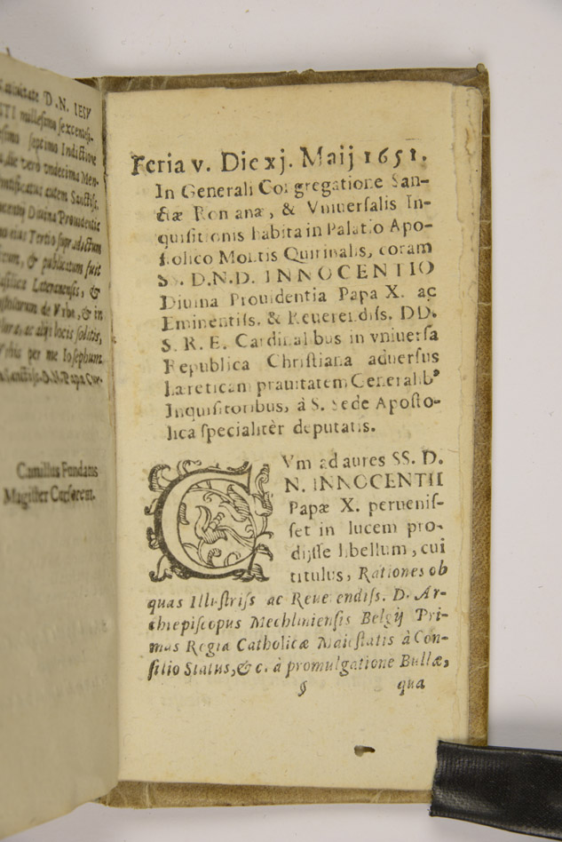 | Feria V. die XI. maii 1651. In generali Congregatione sanctae romanae, & universalis Inquisitionis habita in palatio apostolico montis Quirinalis, coram SS. D.N.D. Innocentio divina providentia papa X. ac eminentiss. & reverendiss. dd. S.R.E. cardinalibus in universa republica christiana adversus haereticam pravitatem generalib. inquisitoribus, a S. Sede Apostolica specialiter deputatis |