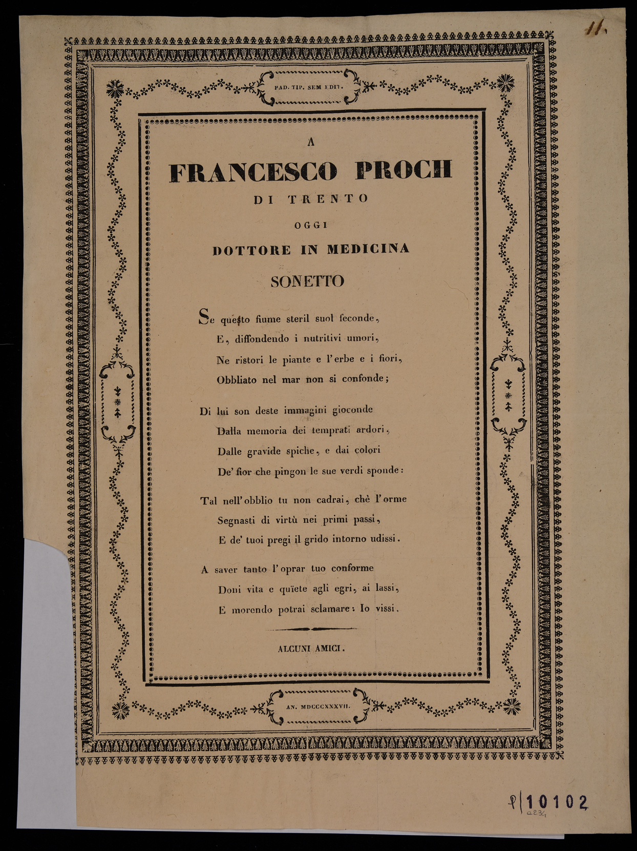| A Francesco Proch di Trento oggi dottore in medicina, sonetto |