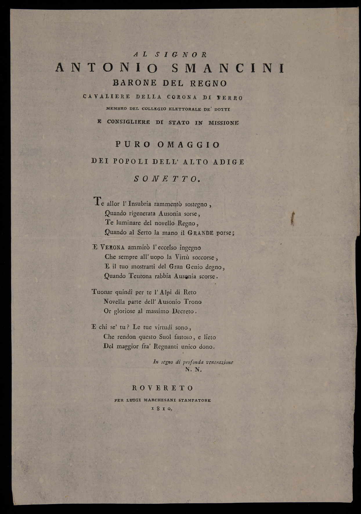 | Al signor Antonio Smancini barone del regno cavaliere della Corona di ferro ... sonetto |