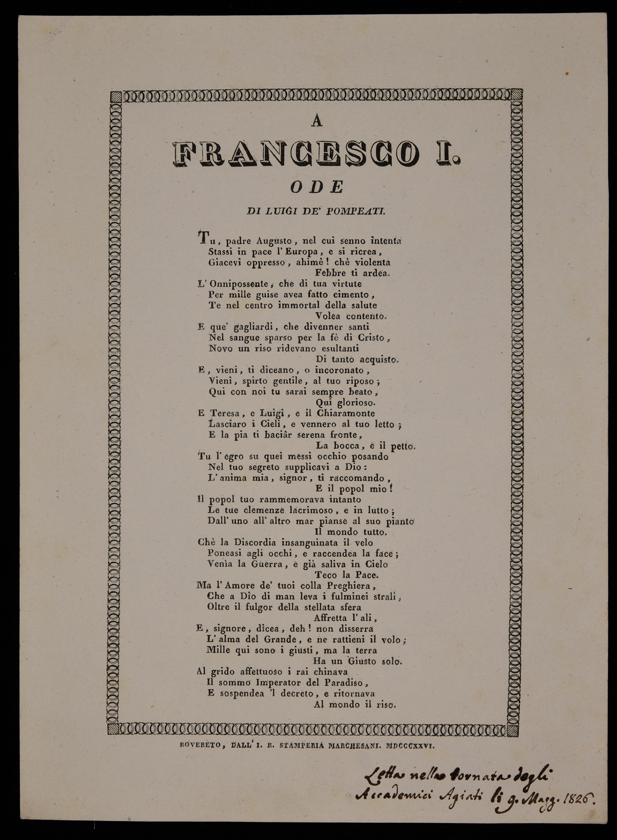A Francesco I., ode di Luigi de' Pompeati