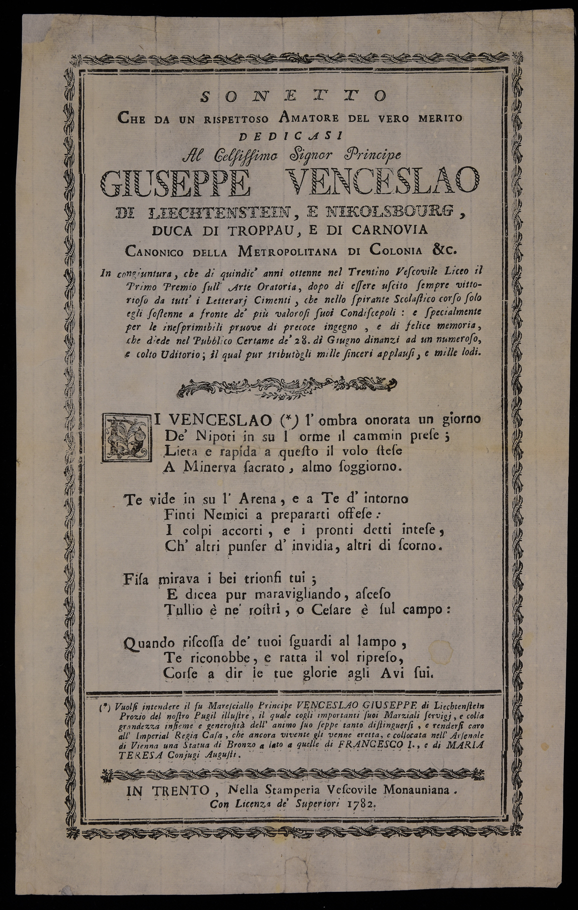 | Sonetto che da un rispettoso amatore del vero merito dedicasi al celsissimo signor principe Giuseppe Venceslao ... |