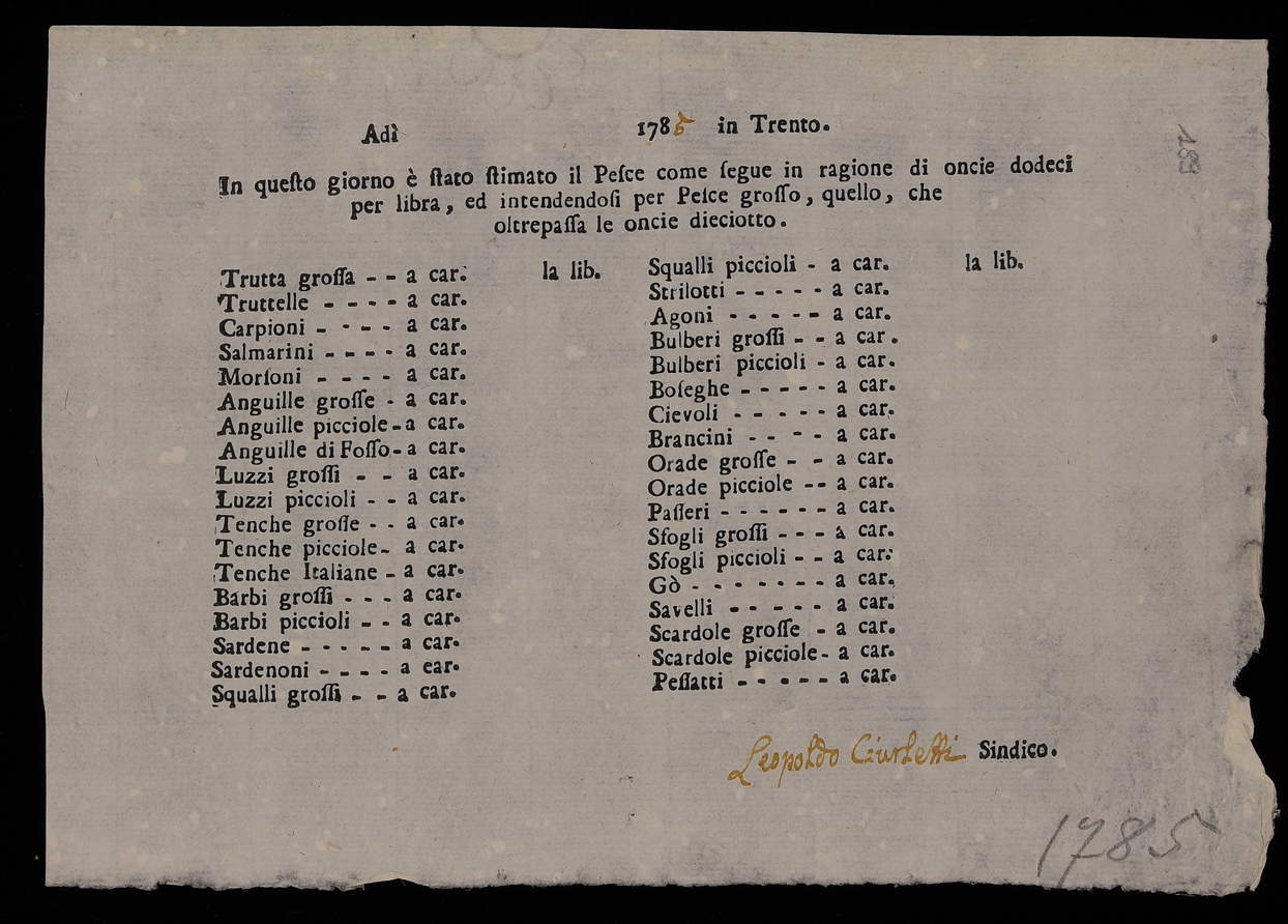 In questo giorno è stato stimato il pesce come segue in ragione di oncie dodeci per libra ...