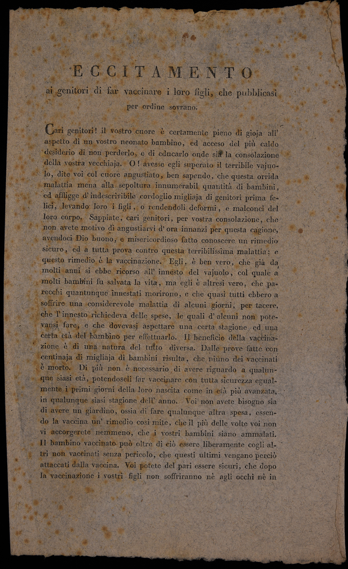 | Eccitamento ai genitori di far vaccinare i loro figli, che pubblicasi per ordine sovrano |
