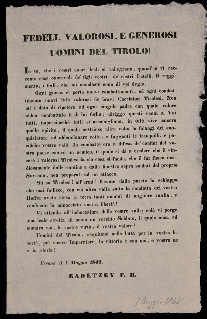 | Fedeli, valorosi e generosi uomini del Tirolo! |
