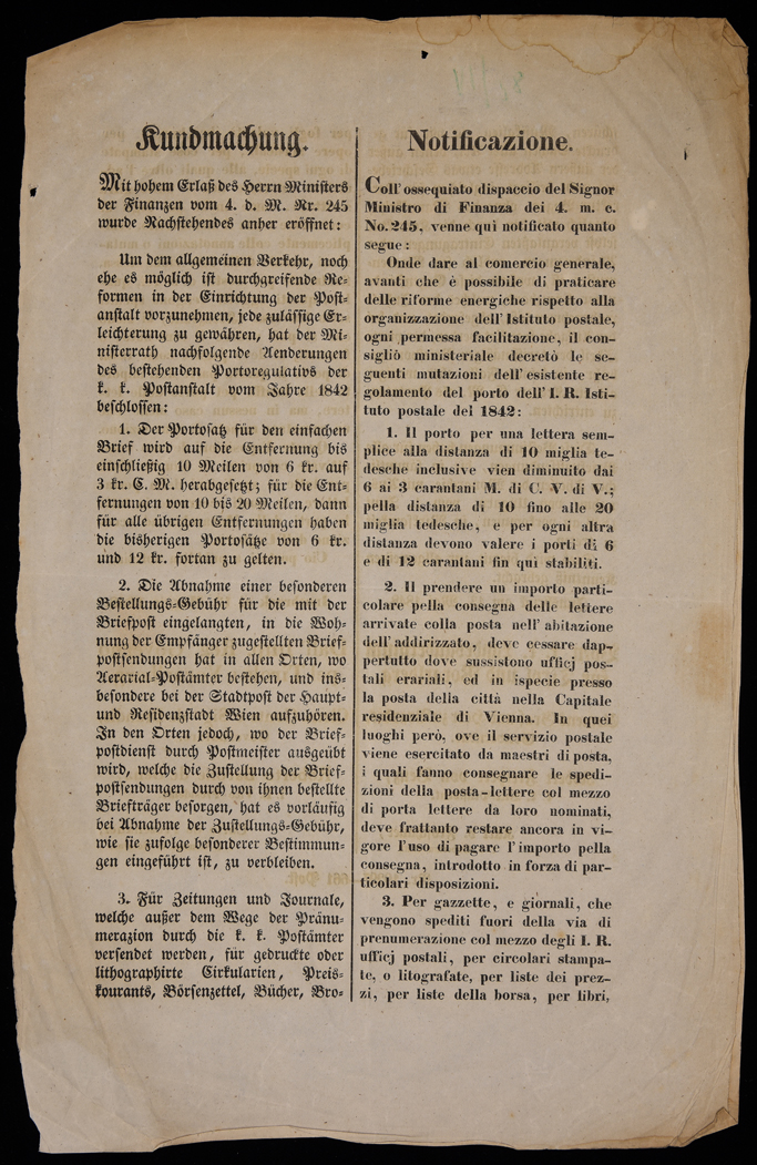 Mit hohem Erlass des Herrn Ministers der Finanzen vom 4 d. M. Nr. 245 wurde Nachstehendes anher eröffnet ...